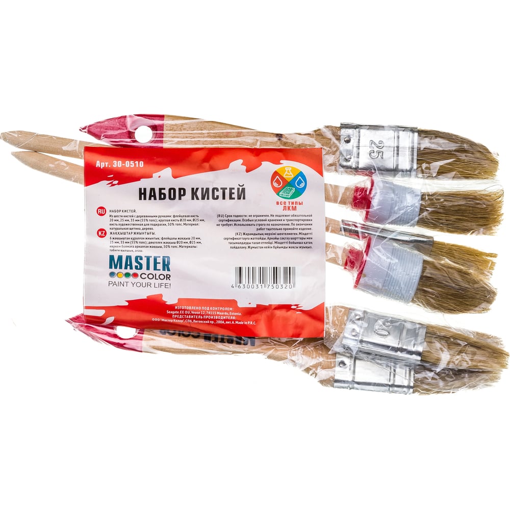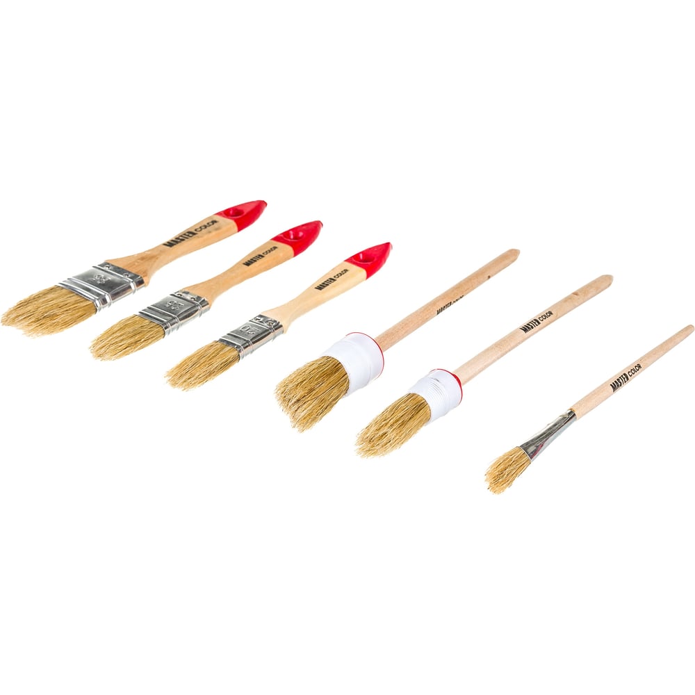 Набор из 6 кистей с деревянными ручками: флейцевые кисти 20, 25, 35мм, круглые кисти 20, 25мм, кисть художественная МASTER COLOR 30-0510