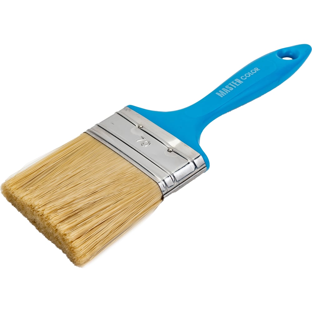 Флейцевая кисть, толщина 12мм, ПЭТ-щетина, нержавеющий обжим, пластиковая ручка, ширина 70мм МASTER COLOR 30-0204