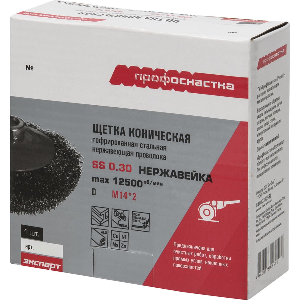 Щетка коническая с гофрированной нержавеющей проволокой Эксперт 535 (100 мм; М14*2 мм) Профоснастка 20804001