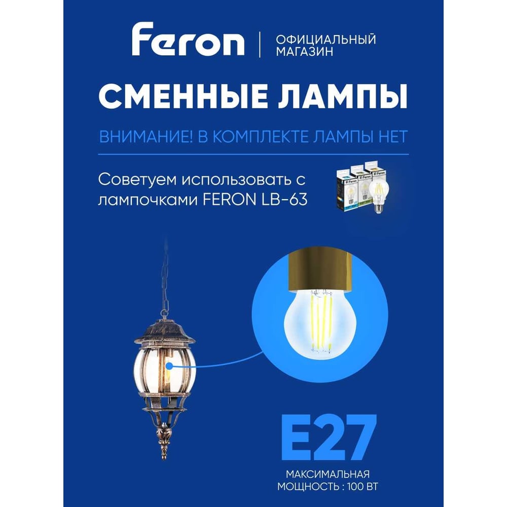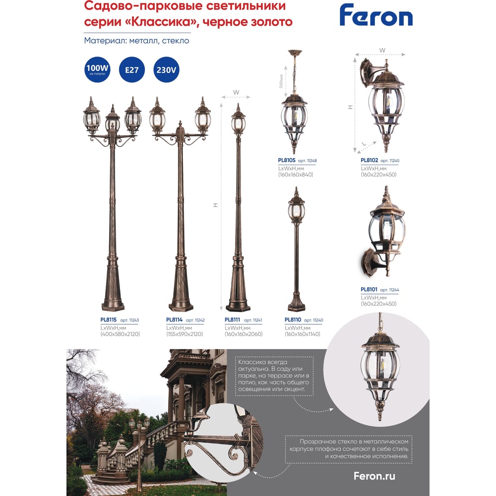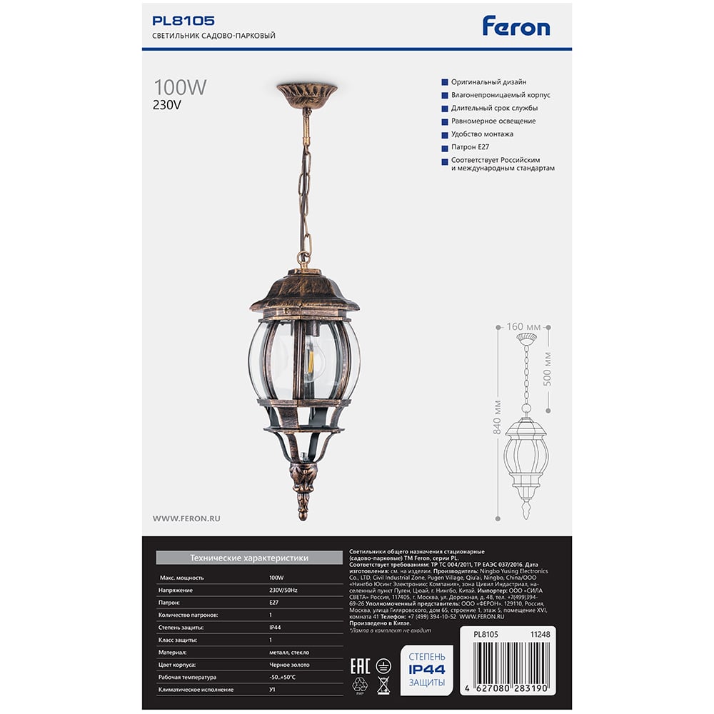 Садово-парковый светильник, восьмигранный на цепочке 100W E27 230V, черное золото FERON PL8105 11248