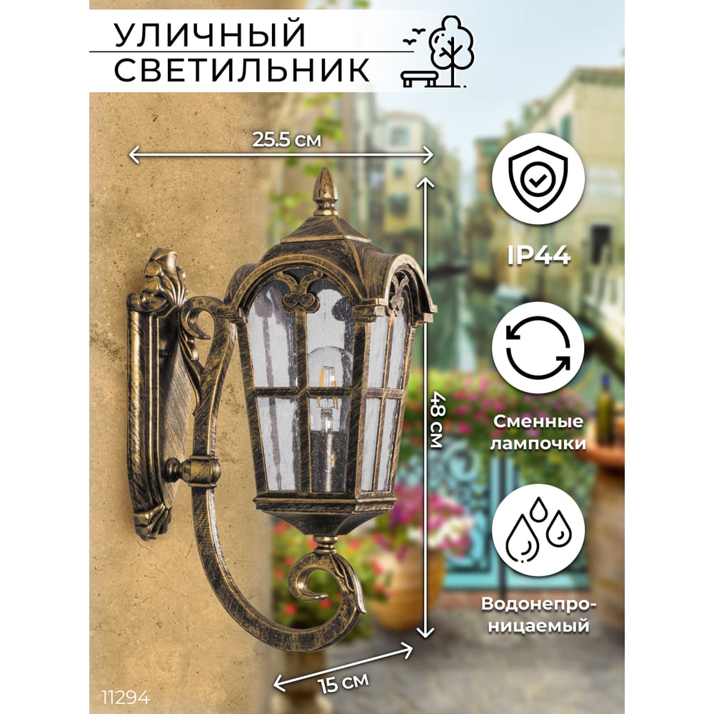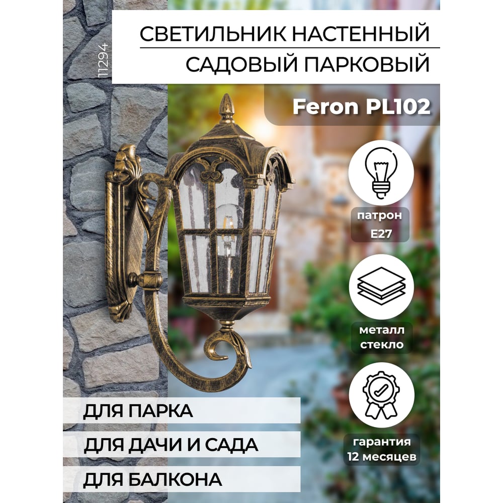 Садово-парковый светильник, четырехгранный на стену вверх 60W 230V E27, черное золото Feron PL102 11294