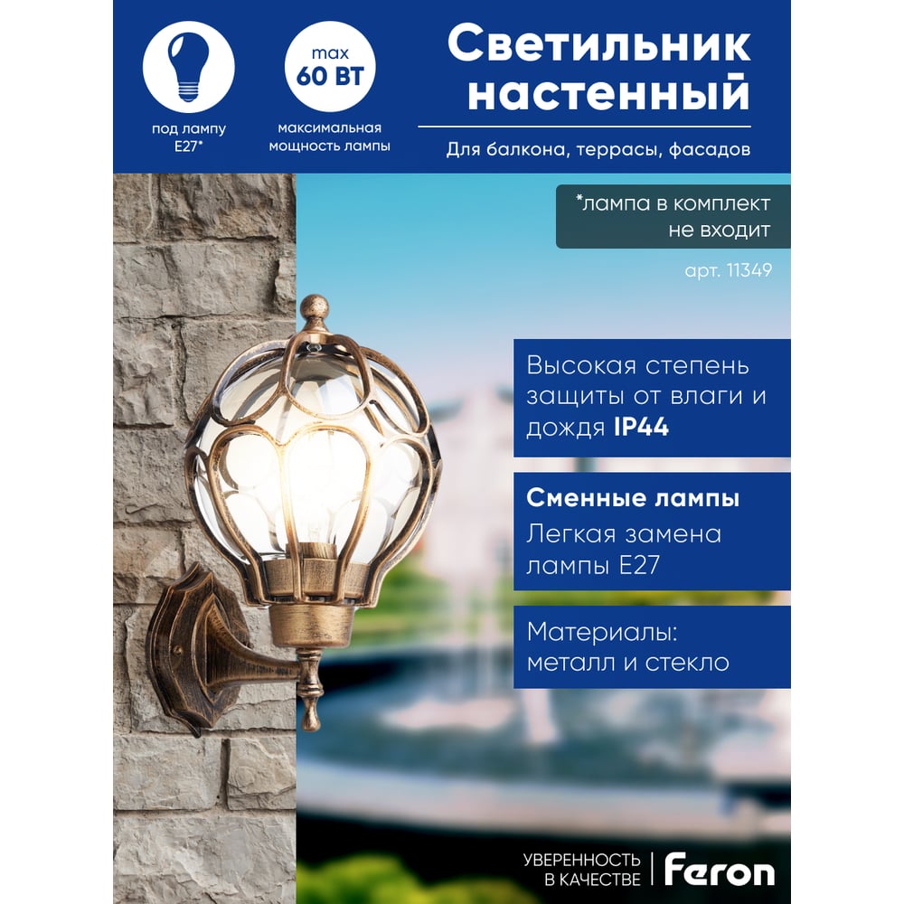 Садово-парковый светильник на стену вверх FERON PL3701 11349