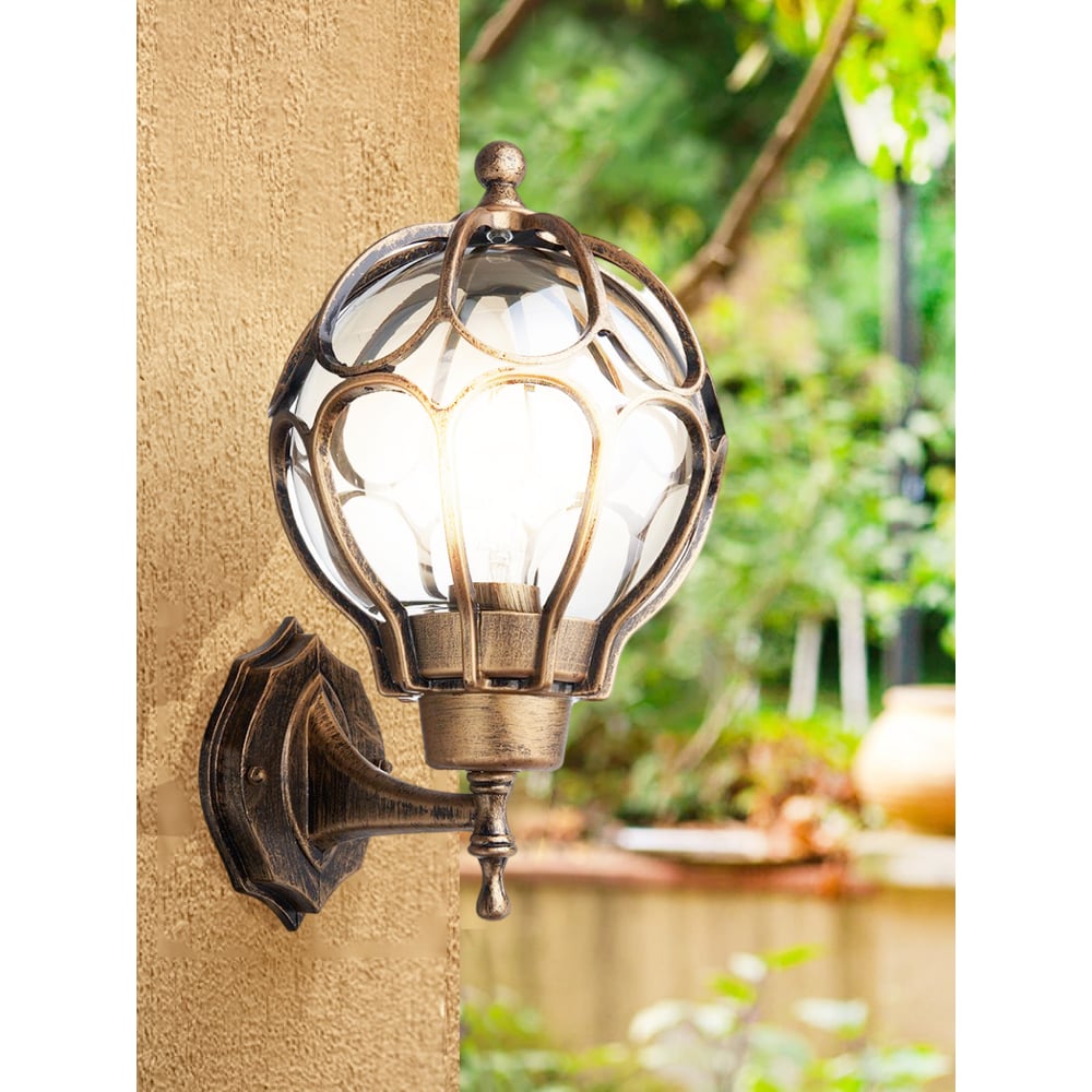 Садово-парковый светильник FERON PL3701 круглый на стену вверх 60W 230V E27, черное золото 11349