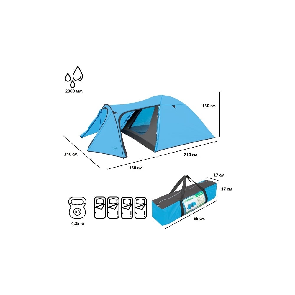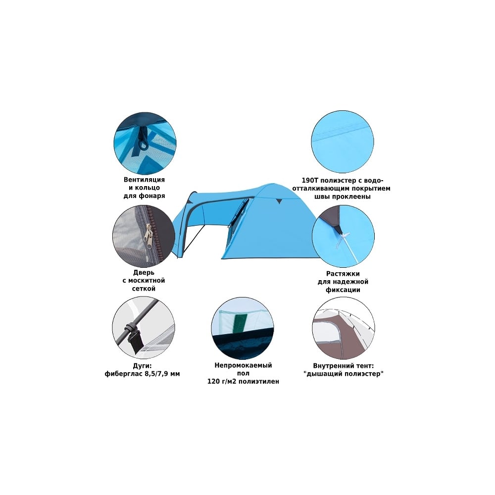 | Влагостойкость | для сильных непродолжительных дождей (до 2000мм водяного столба для внешнего тента) |