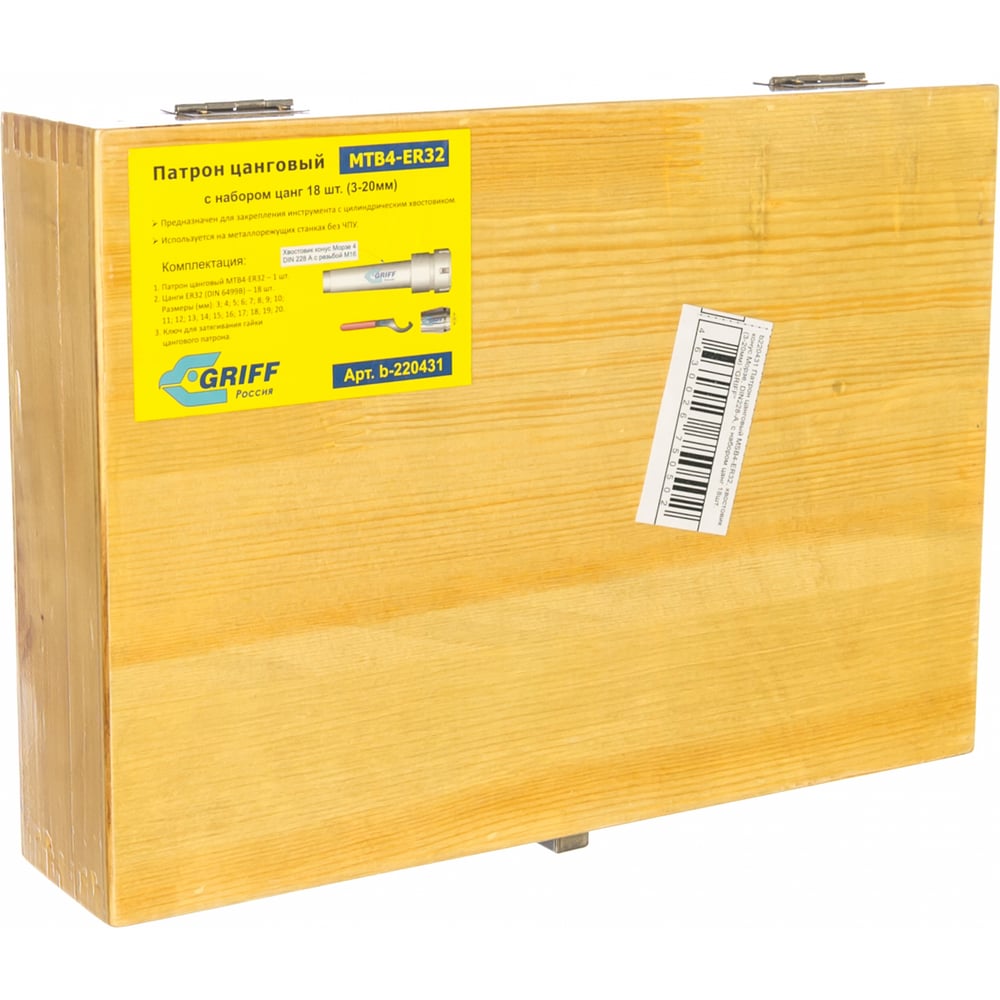 Патрон цанговый MSB4-ER32, хвостовик конус Морзе, DIN228-A, с набором цанг 18 шт. 3-20 мм GRIFF b220431