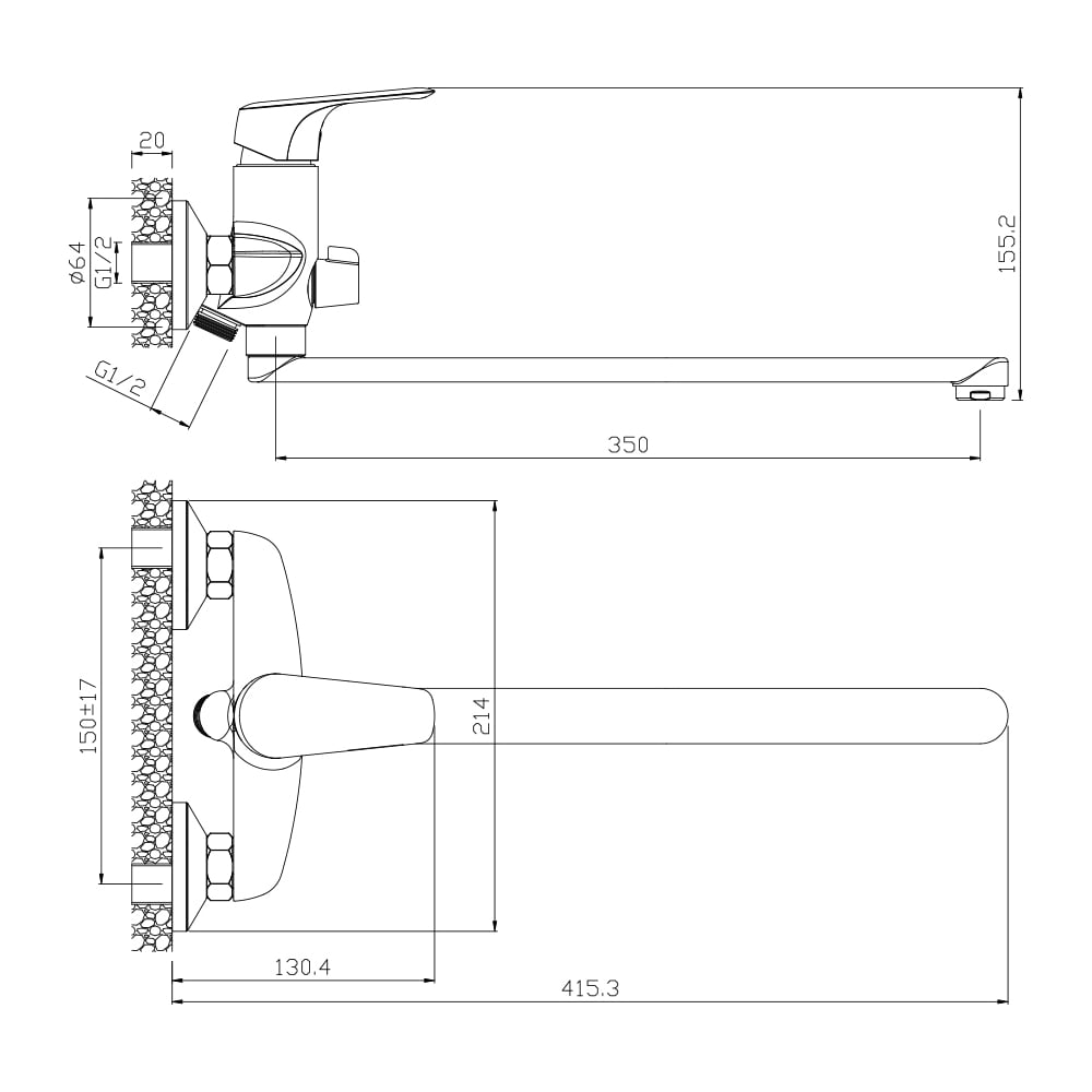 Смеситель для ванны OLIVE'S EVORA 33221EV с длинным изливом
