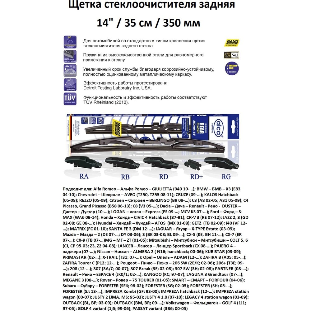 Щетка стеклоочистителя Alca 14/35 см /задняя/ 1410