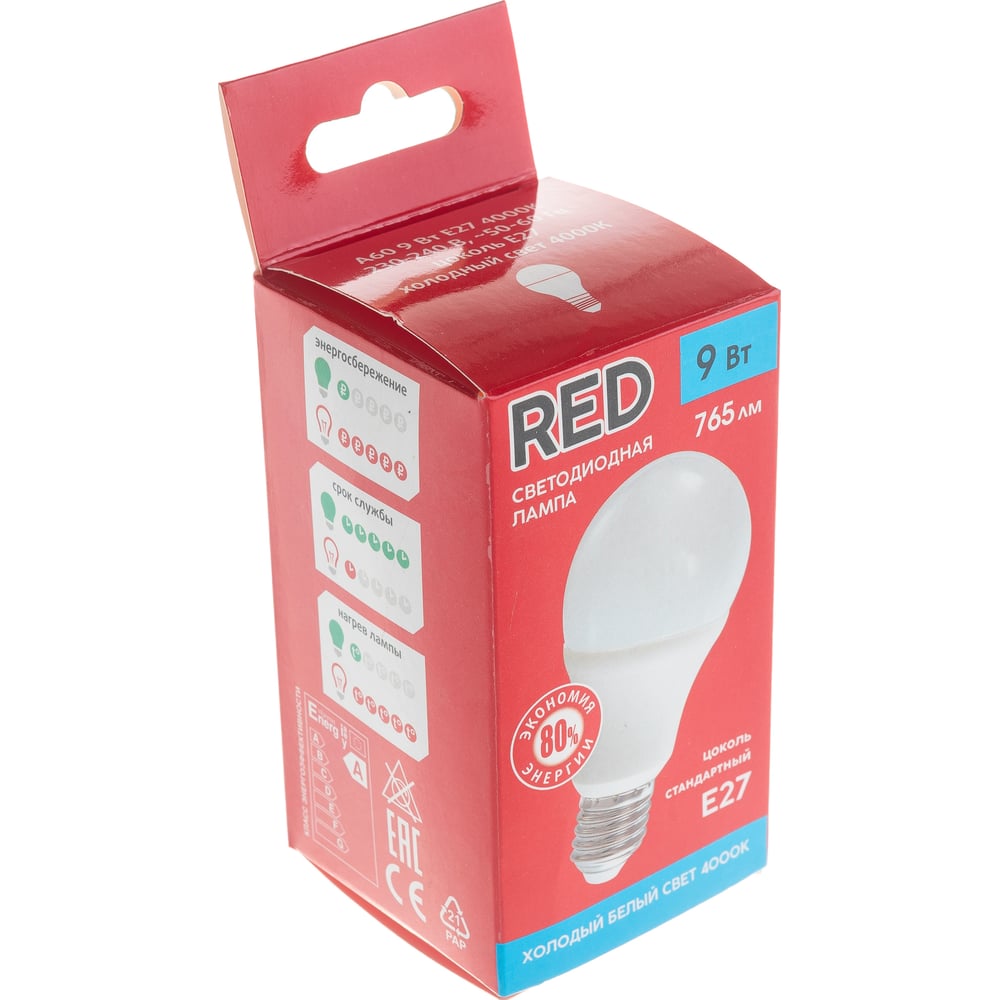 Светодиодная лампа КРАСНАЯ ЦЕНА A60 9W E27 4000K 765лм 4606400619208