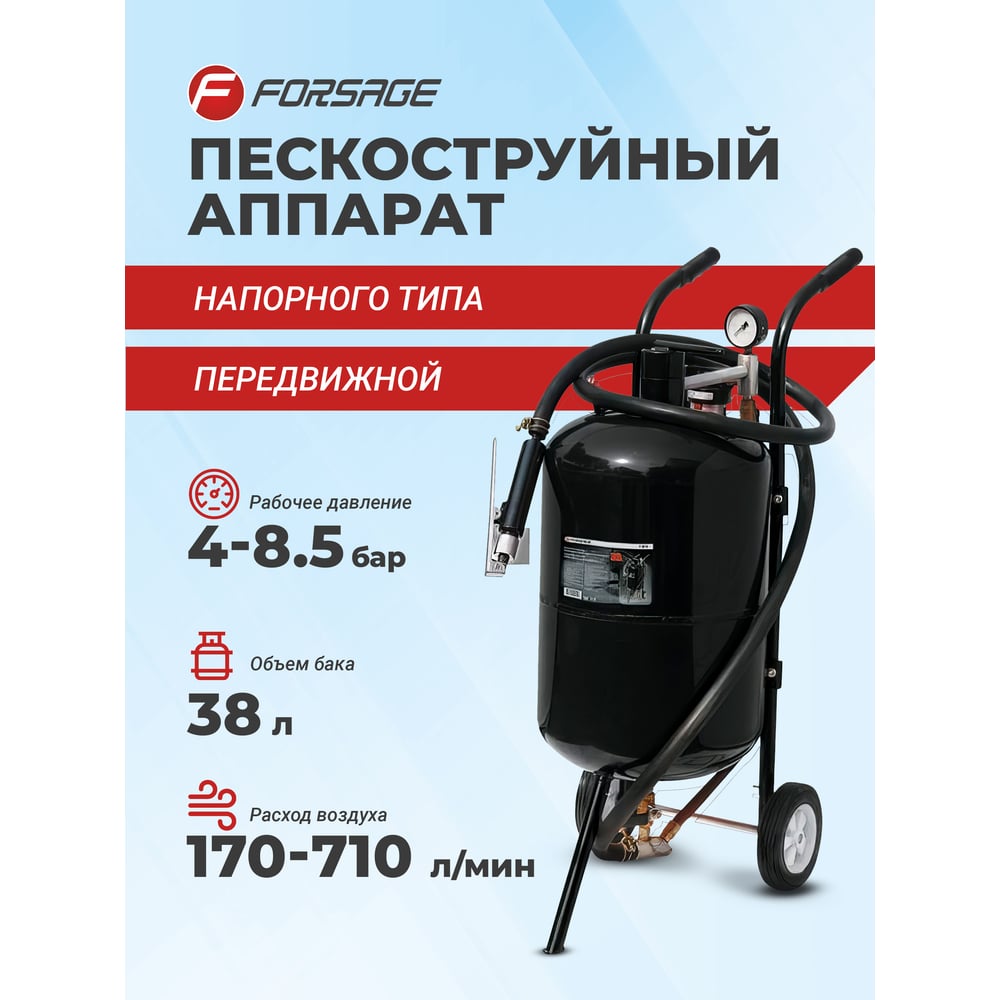 Передвижной пескоструйный аппарат напорного типа (бак 38 л, 170-710 л/мин, 4-8,5 атм) Forsage F-SB10(7395)