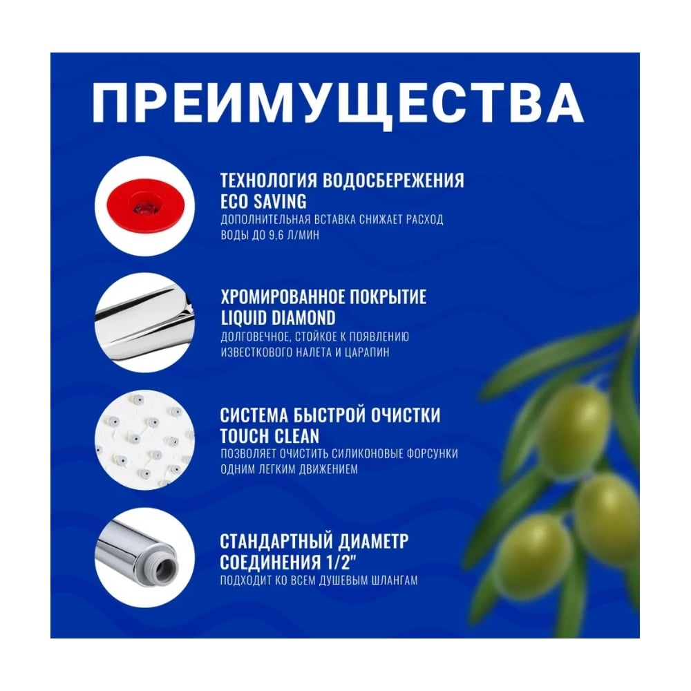 Лейка для душа Olive's 5 режимов с системой Touch Clean и вставкой ECO D165