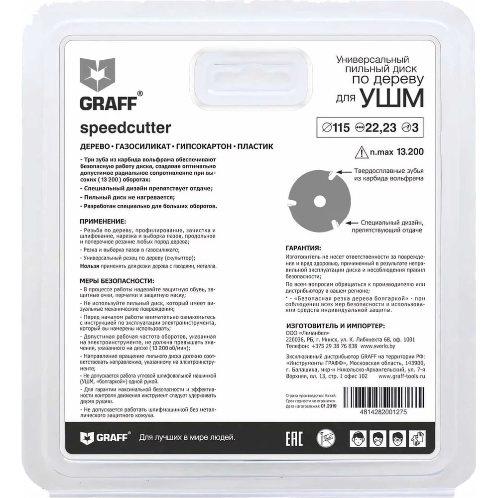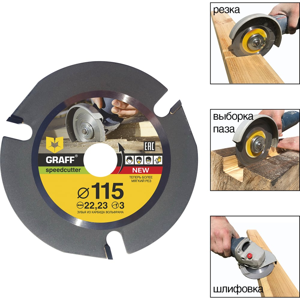 Диск пильный по дереву для УШМ Speedcutter (115х22.2 мм) GRAFF