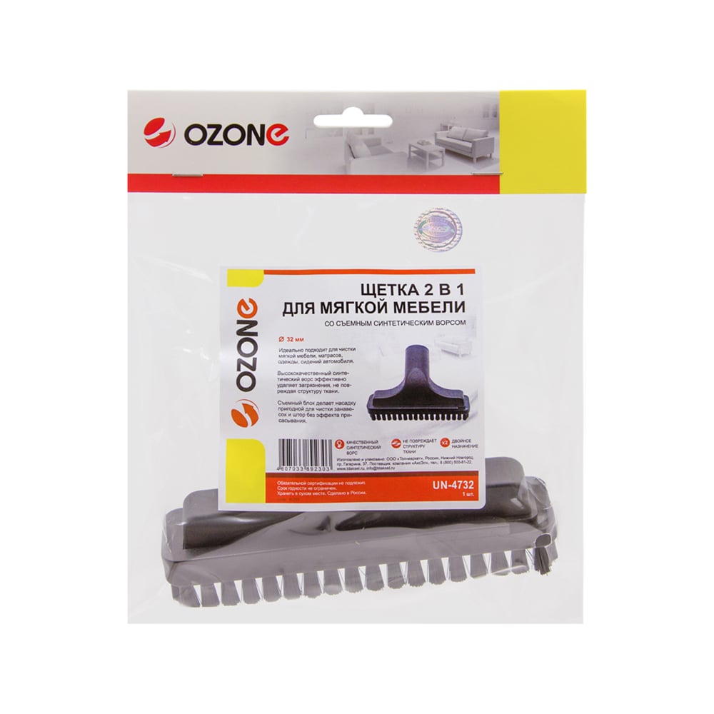 Насадка 2 в 1 для мягкой мебели и обивки со съемным синтетическим ворсом для бытового пылесоса OZONE UN-4732