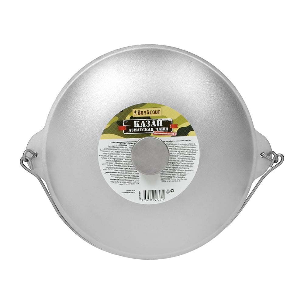 Литой алюминиевый казан с крышкой BOYSCOUT 6 л, азиатская чаша 61360