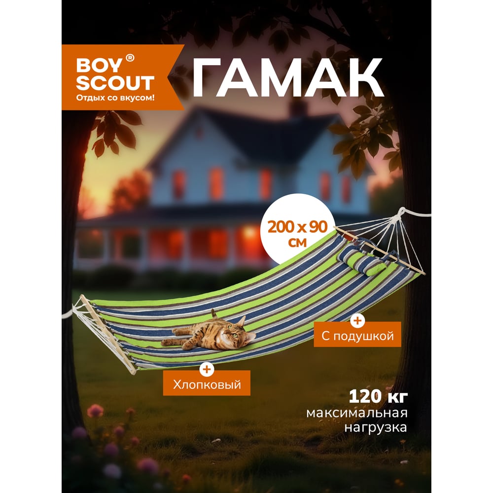 Гамак из хлопка, с деревянными направляющими BOYSCOUT Комфорт 200х90 см 61077