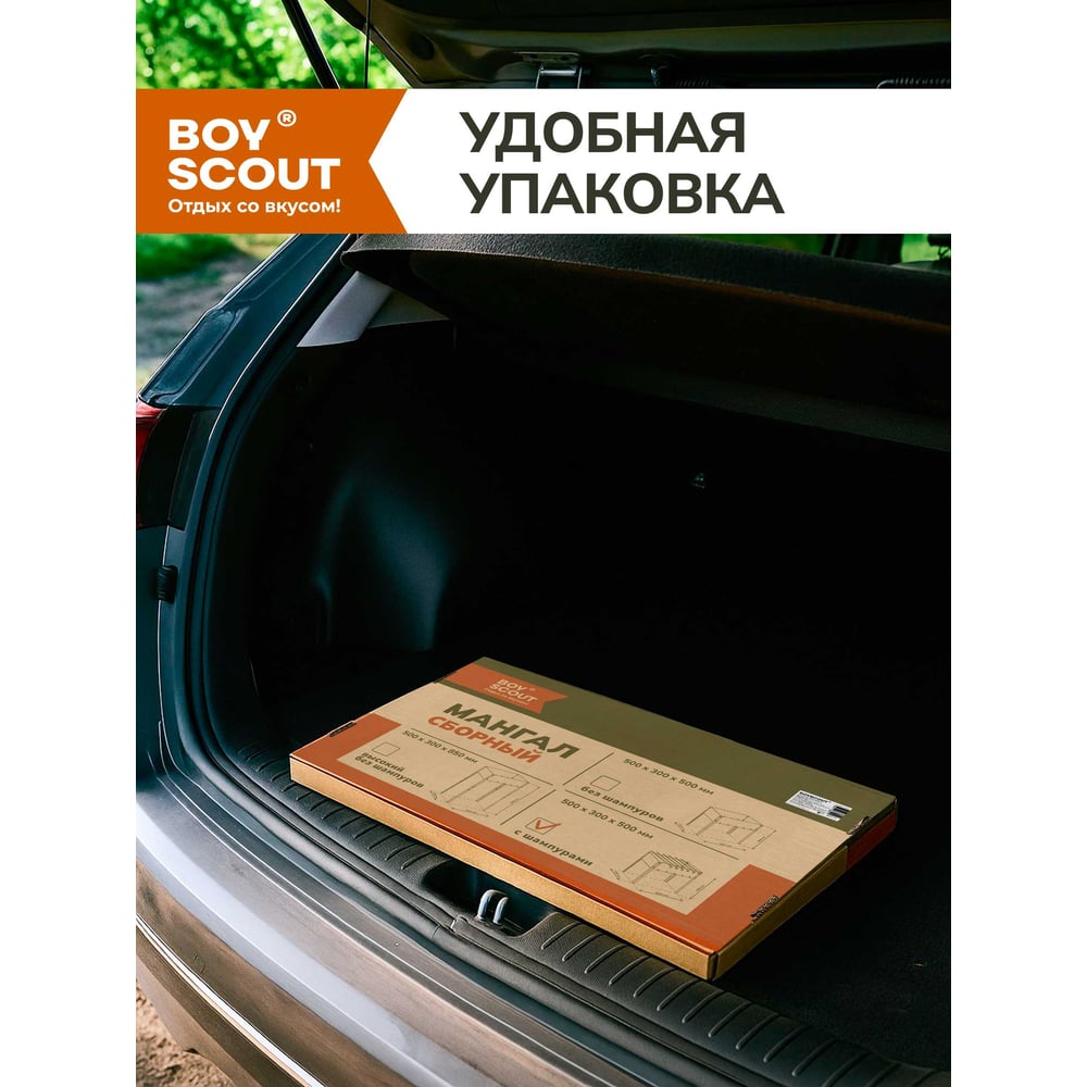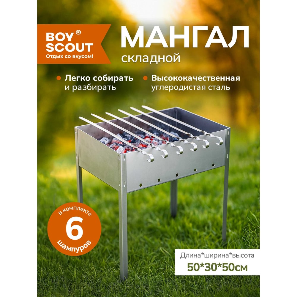 Сборный мангал + 6 шампуров BOYSCOUT 500х300х500мм 61237