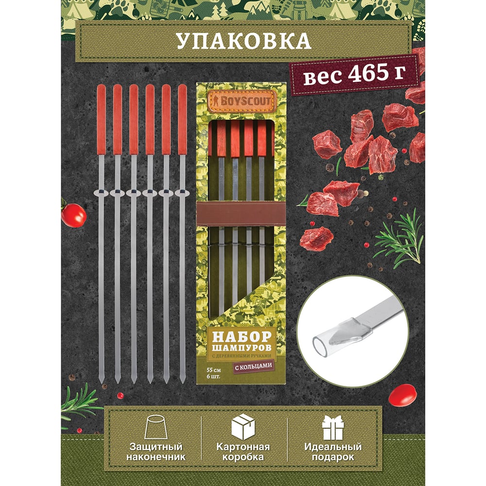 Набор плоских шампуров BOYSCOUT 55 см, 6 шт. 61264