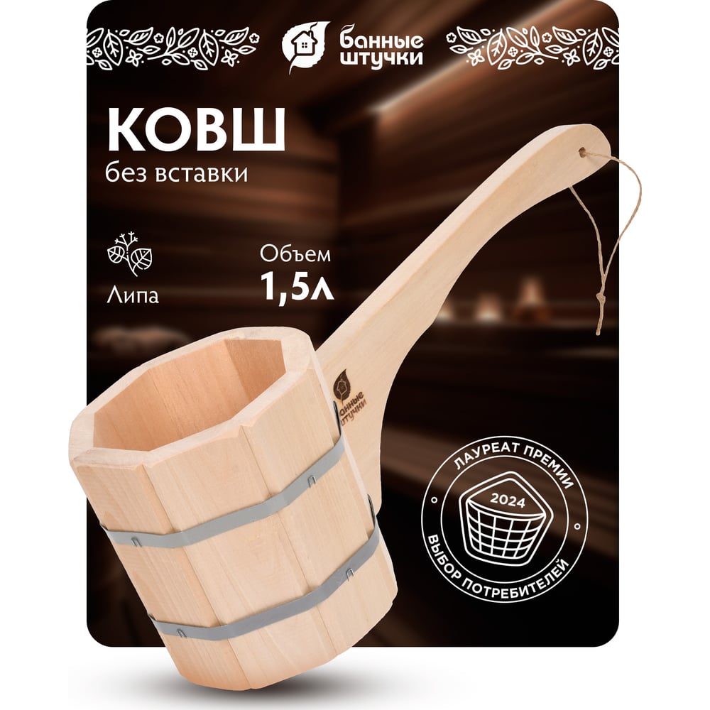 Бондарный ковш-черпак с горизонтальной ручкой Банные штучки 1.5 л 03591