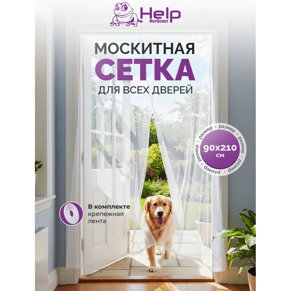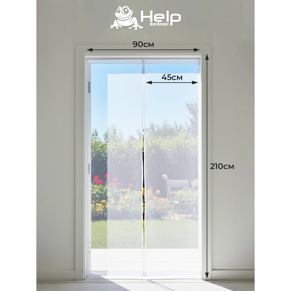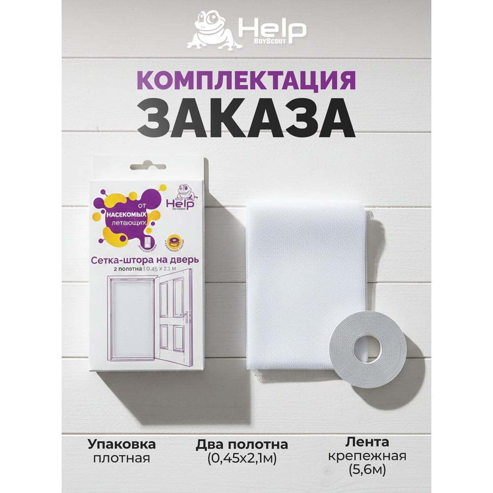 Противомоскитная сетка-штора на дверь с крепежной лентой 45x210 см 2шт. HELP 80003
