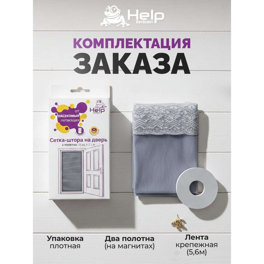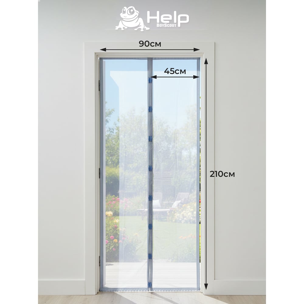 Противомоскитная сетка-штора на дверь с магнитами и крепежом, 45x210 см 2шт HELP 80004