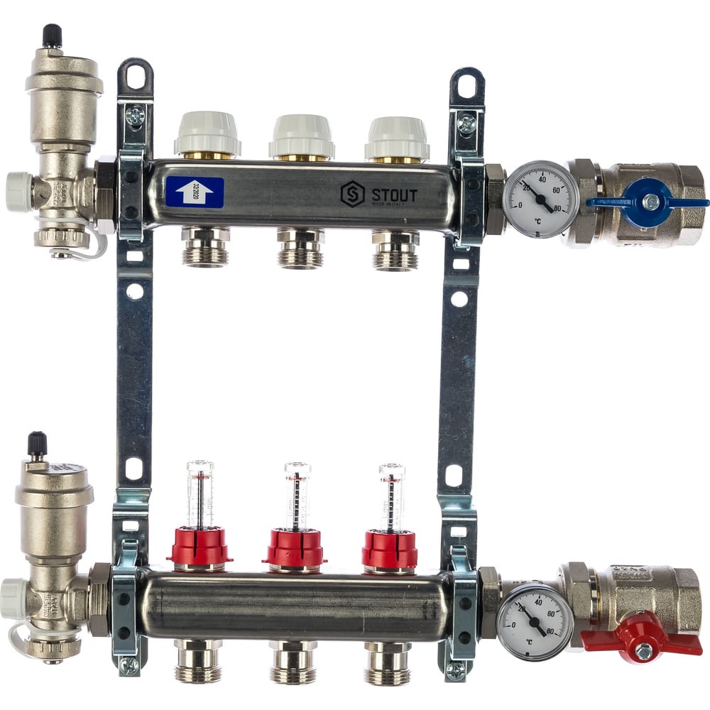 Коллектор из нержавеющей стали в сборе с расходомерами STOUT 3 выхода SMS 0907 000003