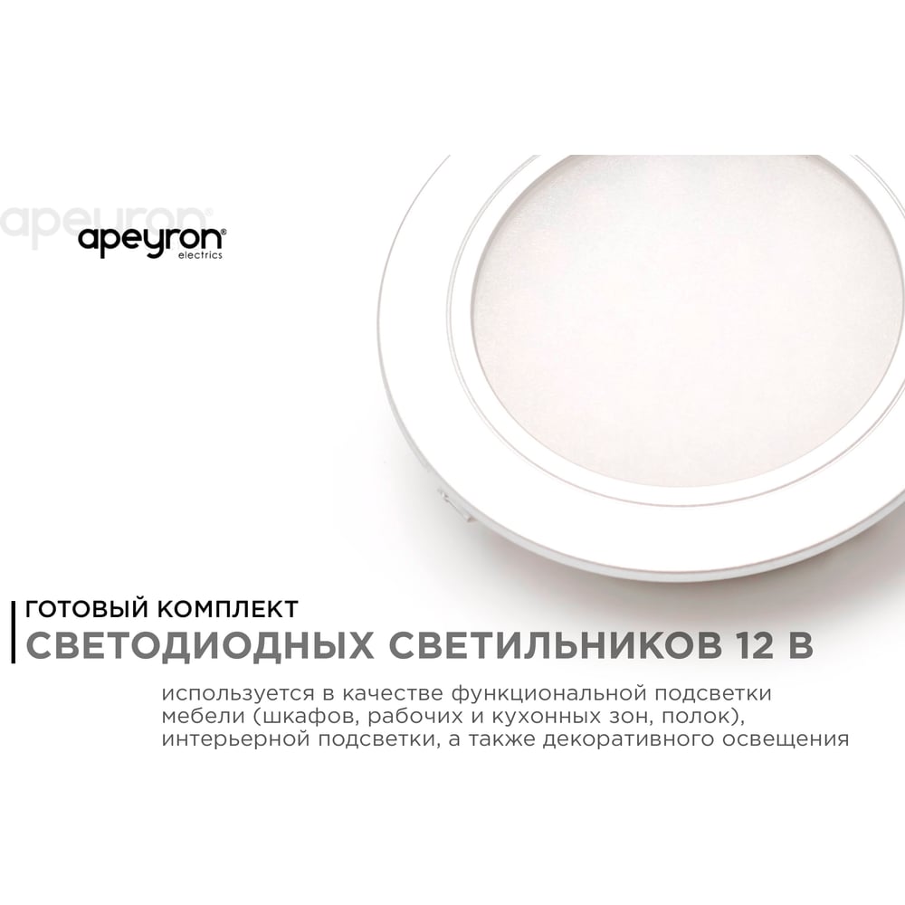 Комплект светодиодных светильников круглых врезных, Apeyron 12В, 1,3 Втх4 шт. ТБ 12-03