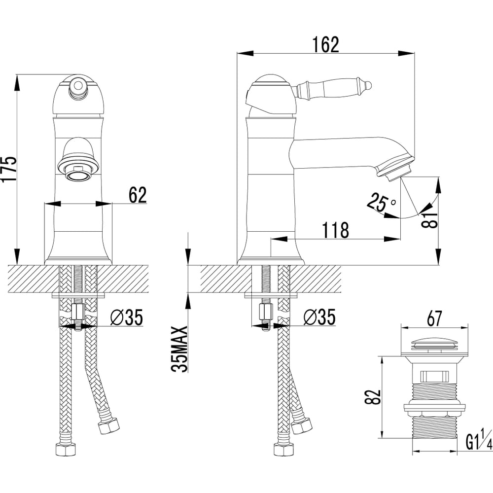 Цвет бронза Тип установки на раковину Вес нетто 1.93 кг Стиль лофт Материал корпуса латунь Серия Villa Поворотный излив нет Назначение для умывальника Тип крепления на шпильку Подсветка нет Порционный нет Гигиенический душ (комплект) нет Гибкий излив нет Донный клапан да Педальный смеситель нет Перелив в комплекте нет Для раковины чаши нет Длина излива 118 мм Высота смесителя 175 мм Лейка нет Встроенная сушка нет Термостат нет С выходом под гигиенический душ нет Встраиваемый нет Подводка в комплекте гибкая Аэратор да Переключатель на фильтр нет Тип смесителя однорычажный Количество монтажных отверстий 1 шт Форма излива воды традиционная Запорный клапан керамический картридж Присоединительный размер 1/2 дюйма Форма смесителя округлая Выдвижной излив нет Излив есть Диаметр картриджа 35 мм Диаметр отверстия в раковине 35 мм Локтевой (хирургический) нет