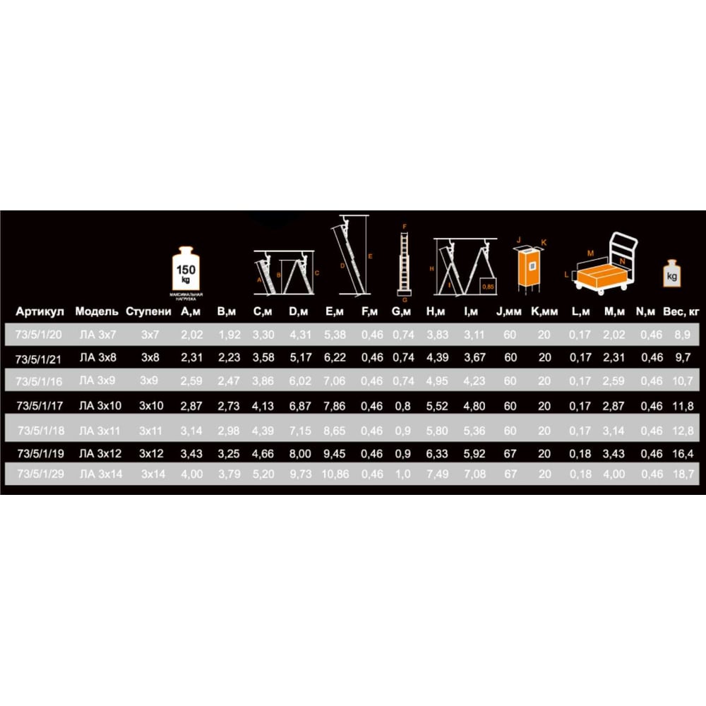Алюминиевая трёхсекционная лестница Вихрь ЛА 3х10 73/5/1/17