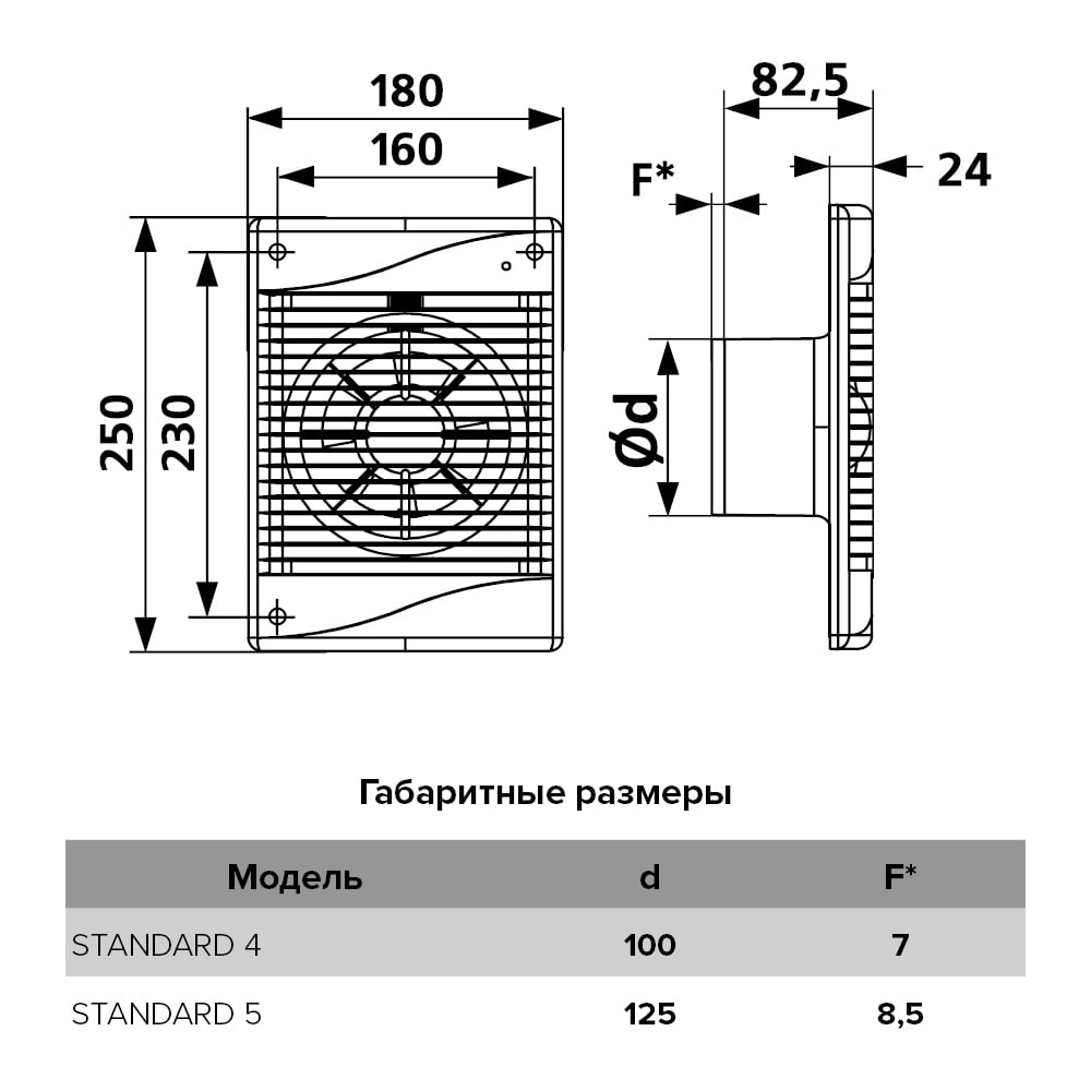Габариты без упаковки 250х180х115 мм Высота 180 мм Ширина 250 мм Цвет белый Тип установки настенный Вес нетто 0.75 кг Серия STANDARD Напряжение 220 В Мощность (Вт) 20 Класс защиты IP24 Производительность 185 м³/ч Диаметр воздуховодов 125 мм Уровень шума 36 дБ Установочная высота 130 мм Наличие датчика влажности нет Наличие таймера нет Москитная сетка нет Обратный клапан есть Вид канала круглый Брызгозащищенное исполнение есть Установочная длина 200 мм Монтажная глубина 58 мм Тип подшипника шариковый Наличие датчика движения нет