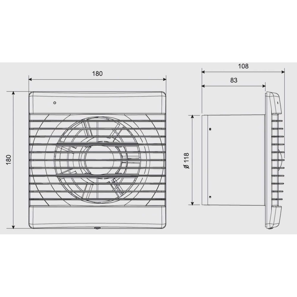 Габариты без упаковки 180х180х108 мм Высота 180 мм Ширина 180 мм Цвет белый Тип установки настенный Вес нетто 0.875 кг Серия Decor Напряжение 220 В Мощность (Вт) 20 Min температура эксплуатации 0 °С Max температура эксплуатации 40 °С Производительность 185 м³/ч Диаметр воздуховодов 120 мм Уровень шума 45.5 дБ Установочная высота 130 мм Наличие датчика влажности нет Наличие таймера нет Москитная сетка нет Обратный клапан есть Вид канала круглый Брызгозащищенное исполнение есть Установочная длина 130 мм Монтажная глубина 83 мм Наличие датчика движения нет