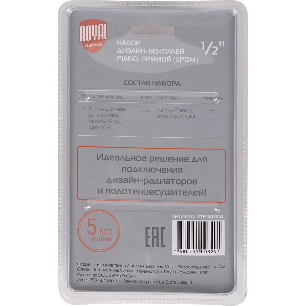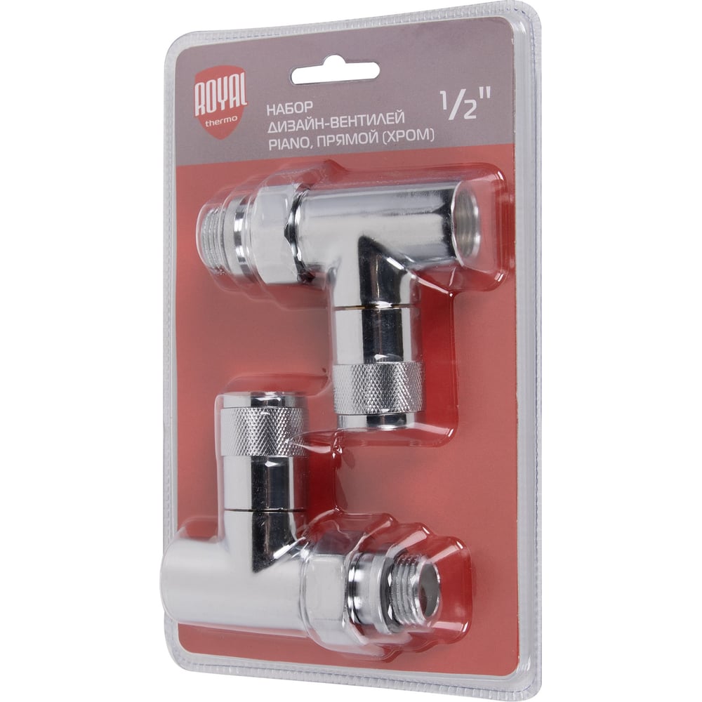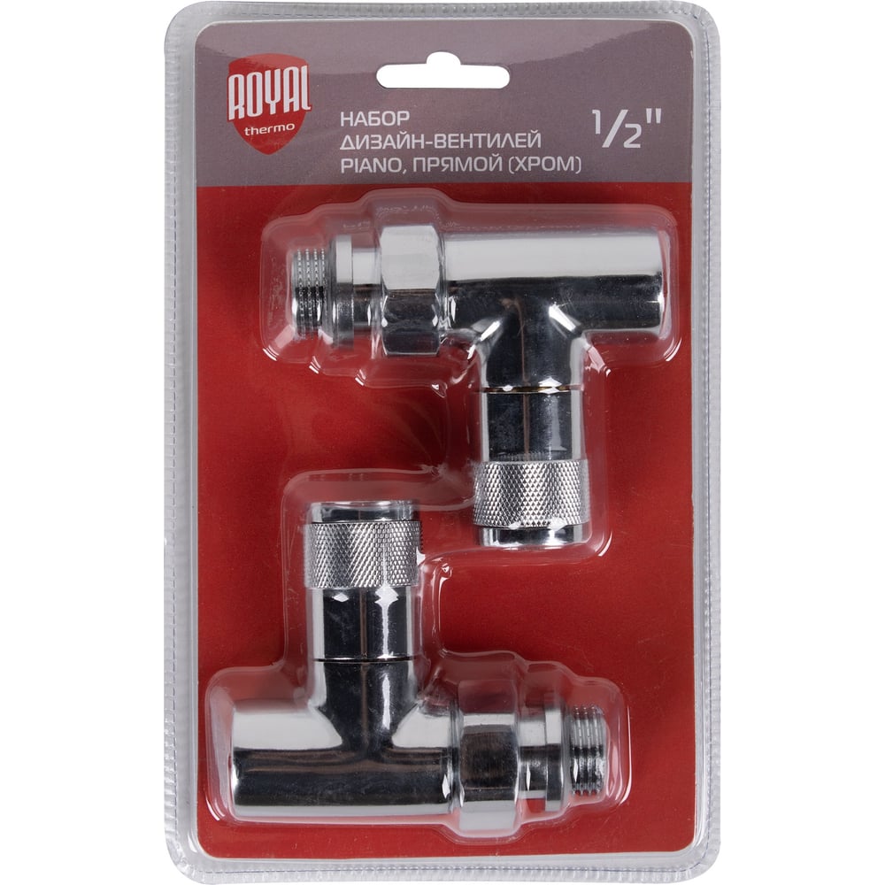Набор дизайн-вентилей Royal Thermo PIANO, прямой хром 1/2 НС-1161360