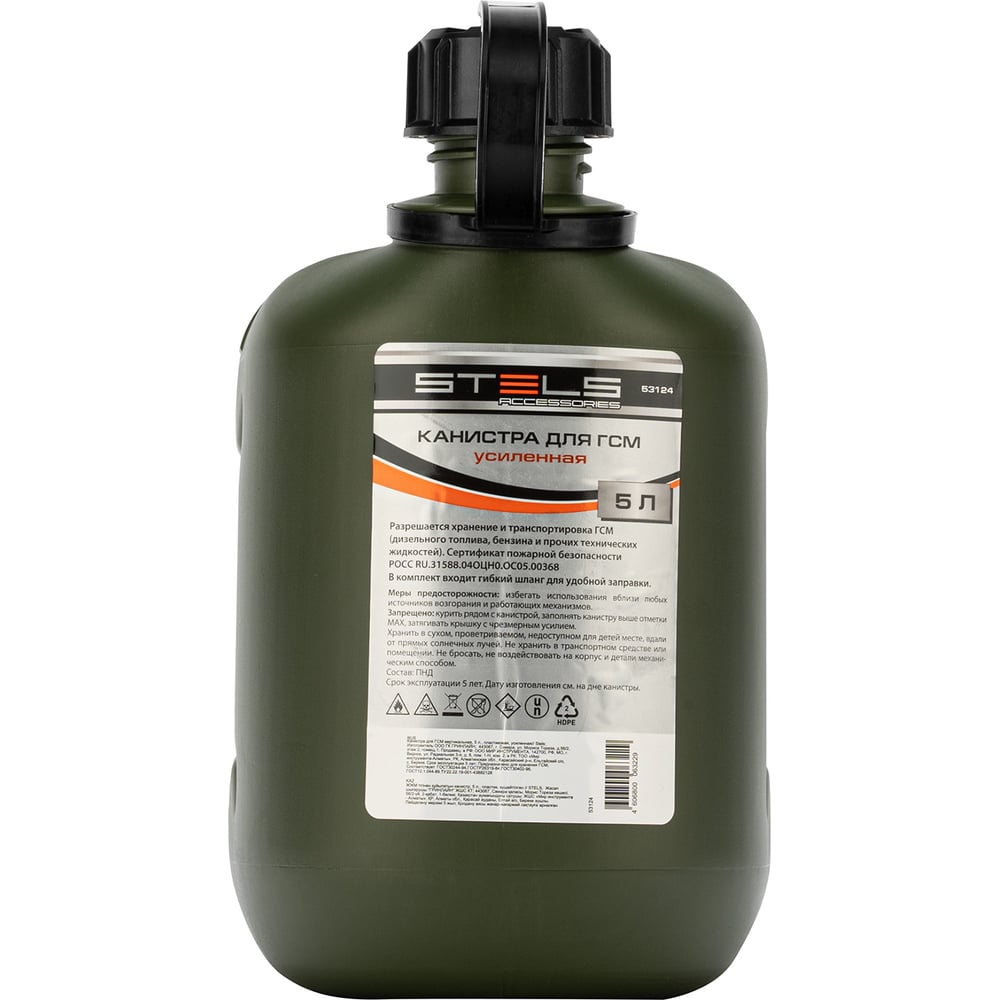 Канистра для ГСМ вертикальная, 5 л пластиковая, усиленная STELS 53124
