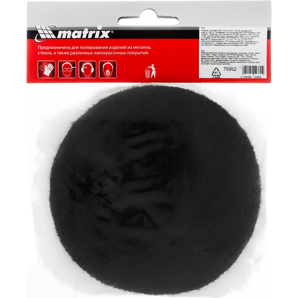 Насадка полировальная под липучку (125 мм, натуральная шерсть) MATRIX 75952