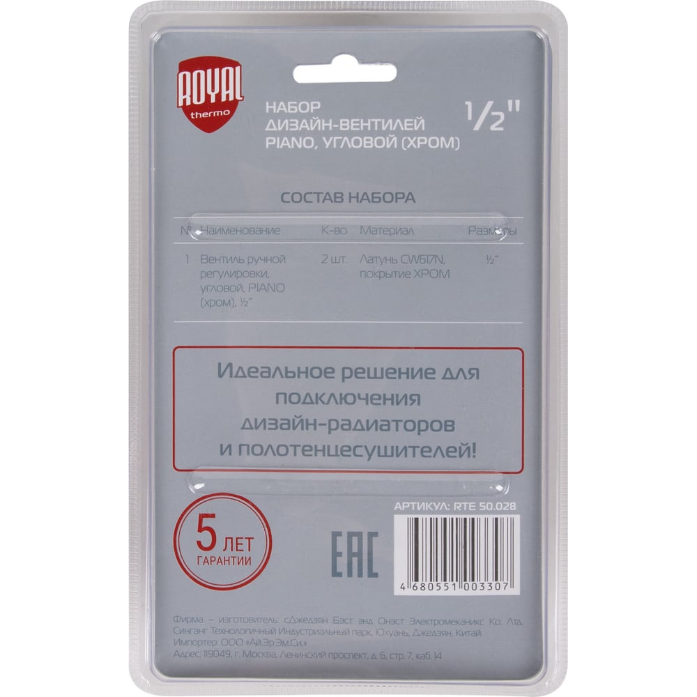 Набор дизайн-вентилей Royal Thermo PIANO угловой хром 1/2 НС-1144294