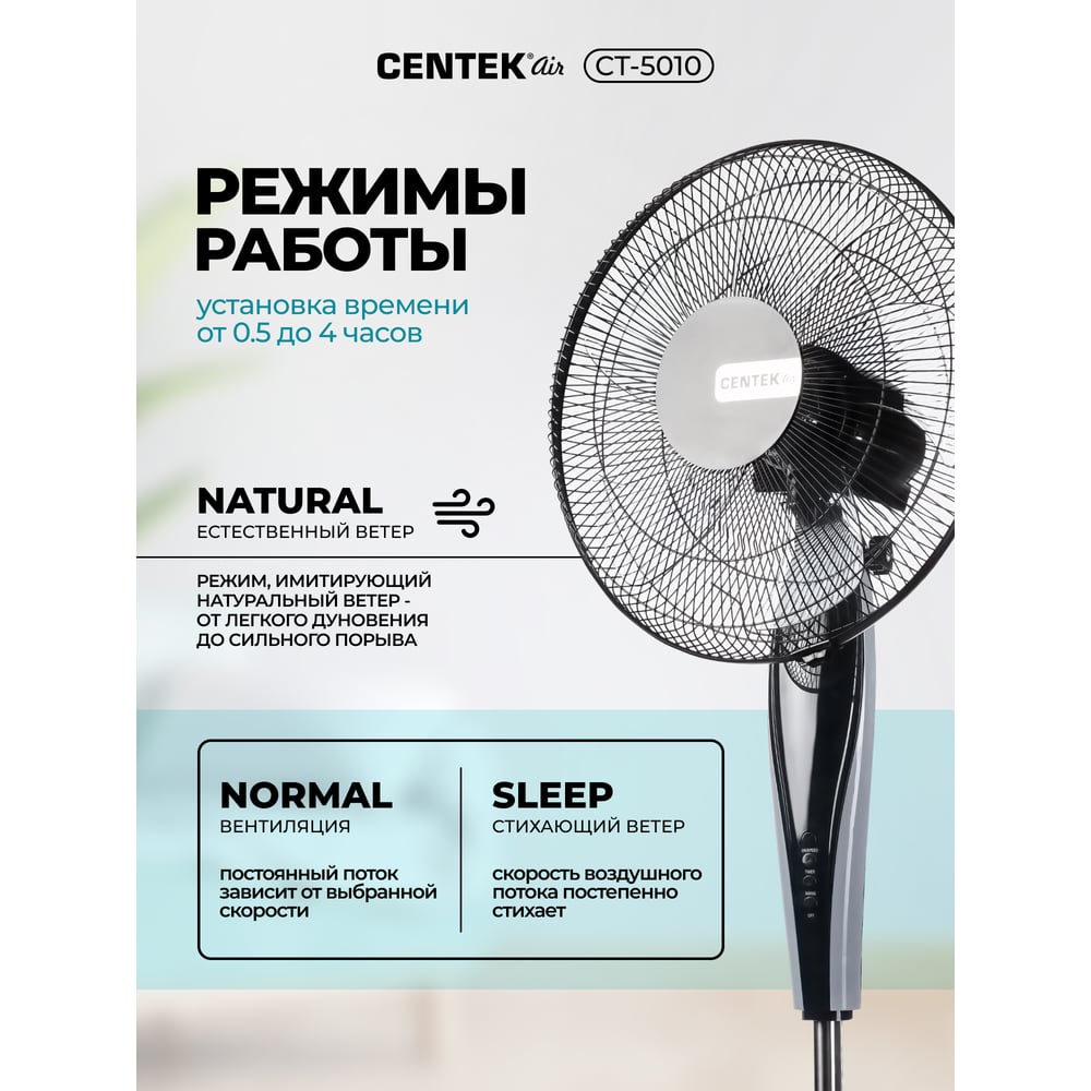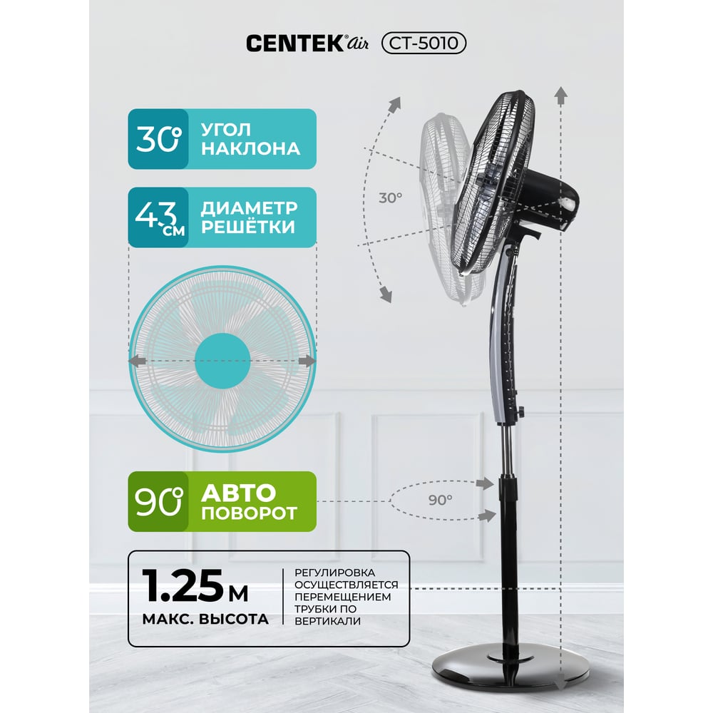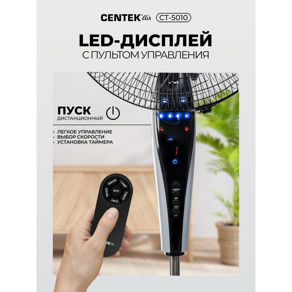 Напольный вентилятор Centek (черный) 65Вт, Пульт ДУ, LED, 1.3м, 43см, таймер, тяжелая база, CT-5010