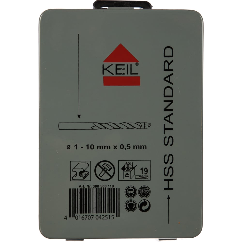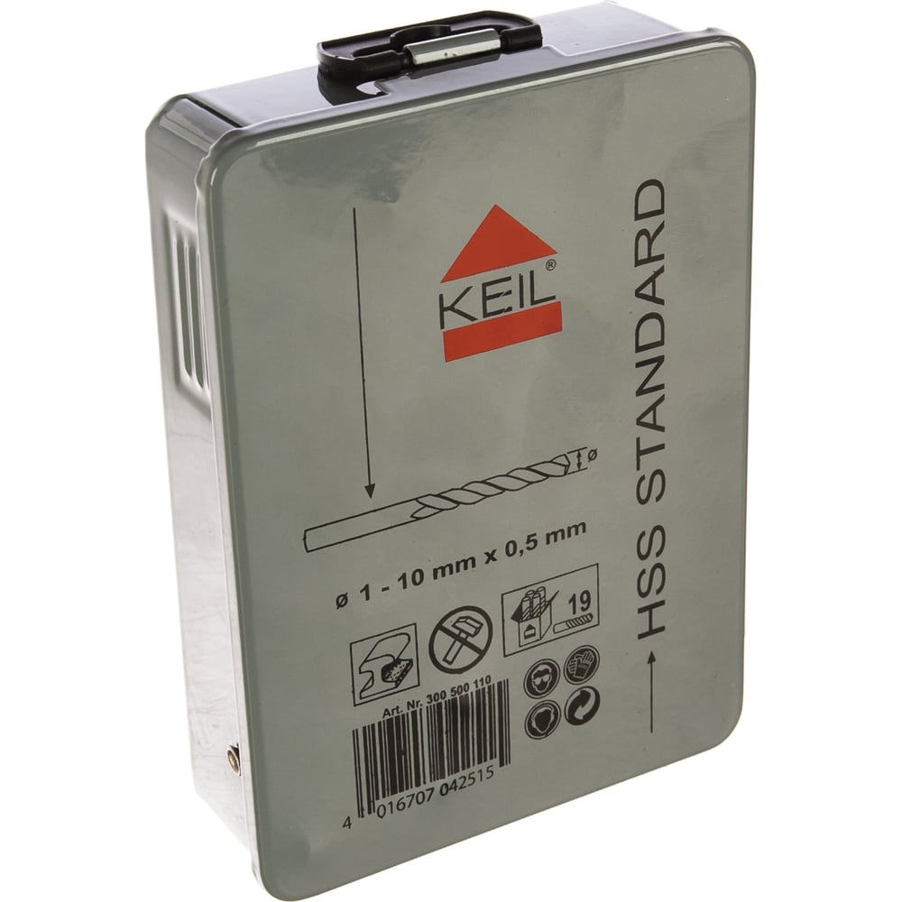 Набор сверл по металлу HSS DIN 338, 1,0-10,0 мм, 19 шт. KEIL 300500110