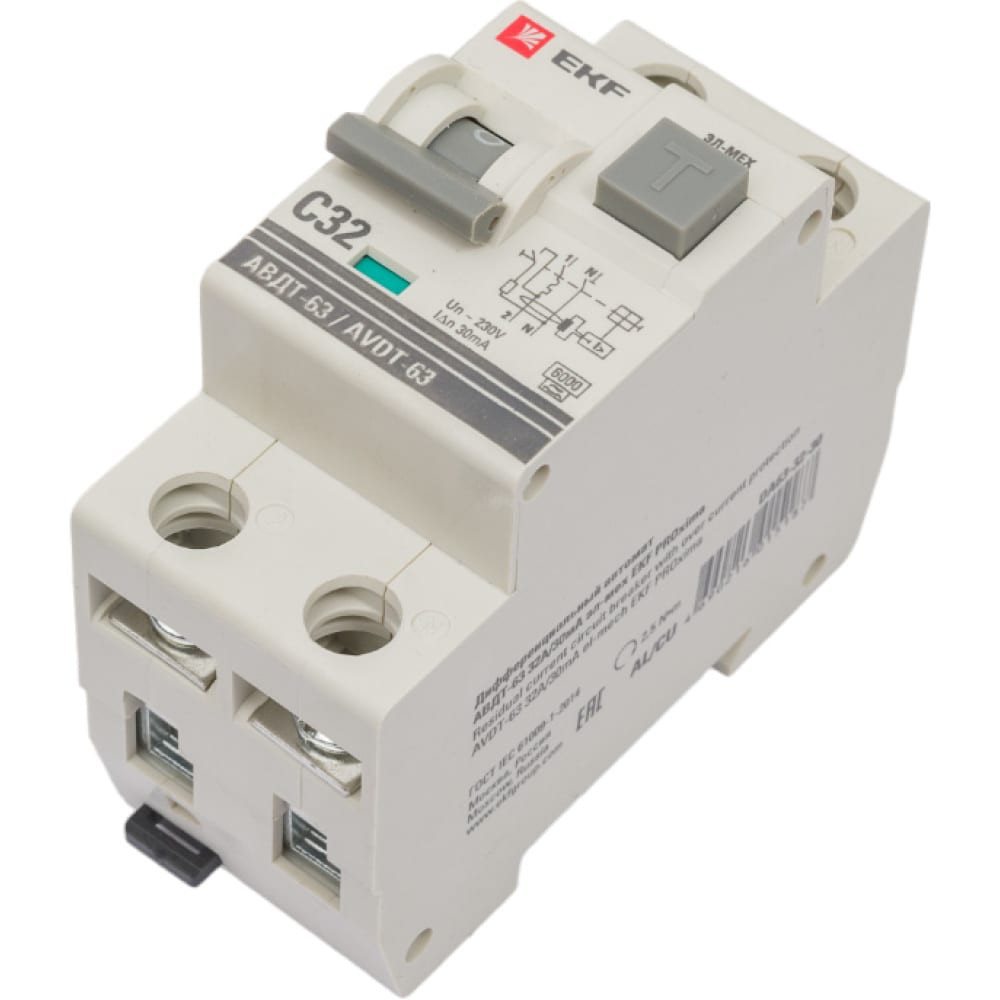 Дифференциальный автомат EKF АВДТ-63 32А/30мА (характеристика C, эл-мех, тип А) 6кА PROxima DA63-32-30
