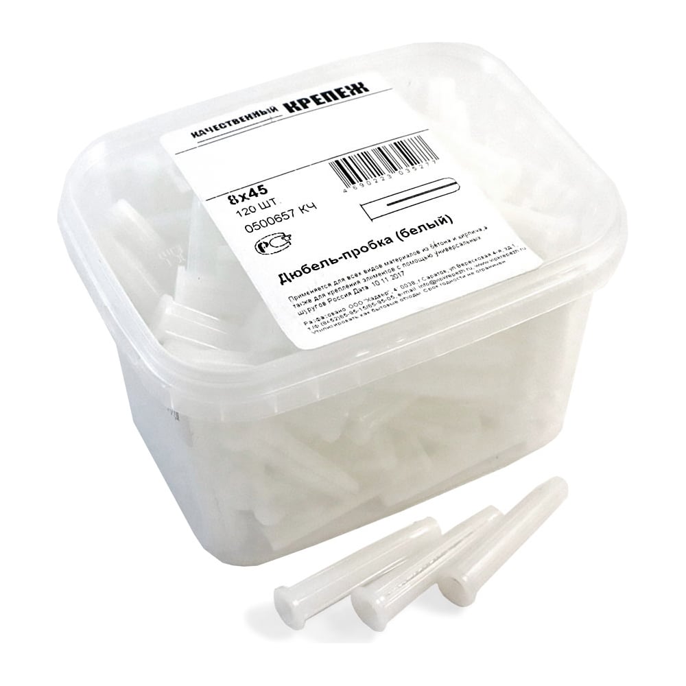 Дюбель-пробка Качественный КРЕПЕЖ белый, 8x45, 120 шт 0500657 КЧ