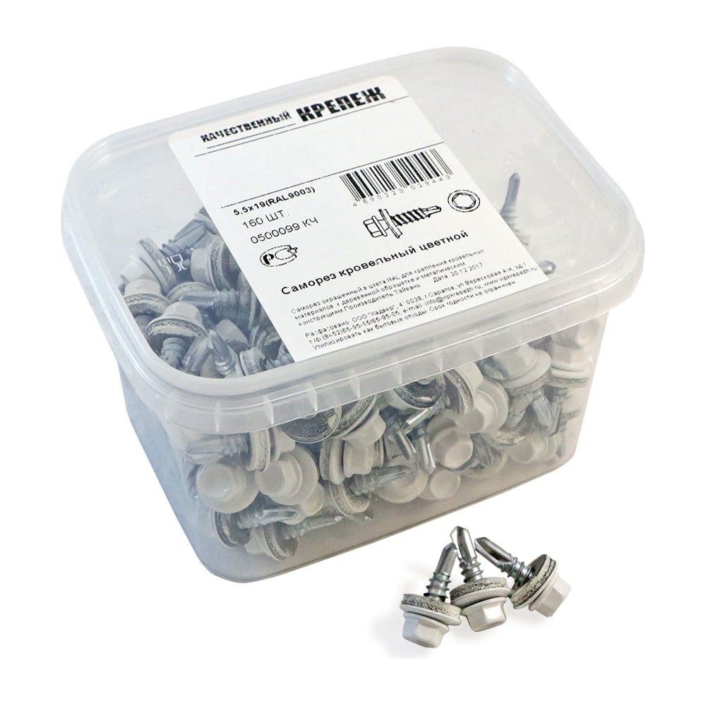 Кровельный саморез Качественный КРЕПЕЖ белый RAL 9003, 5.5х19 мм, 160 шт 0500099 КЧ