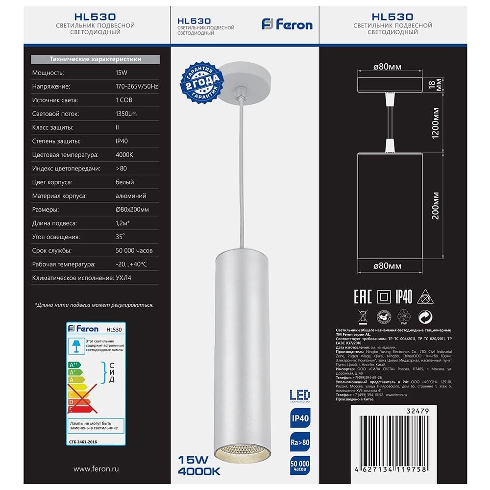 | Длина подвеса | 1200 мм |