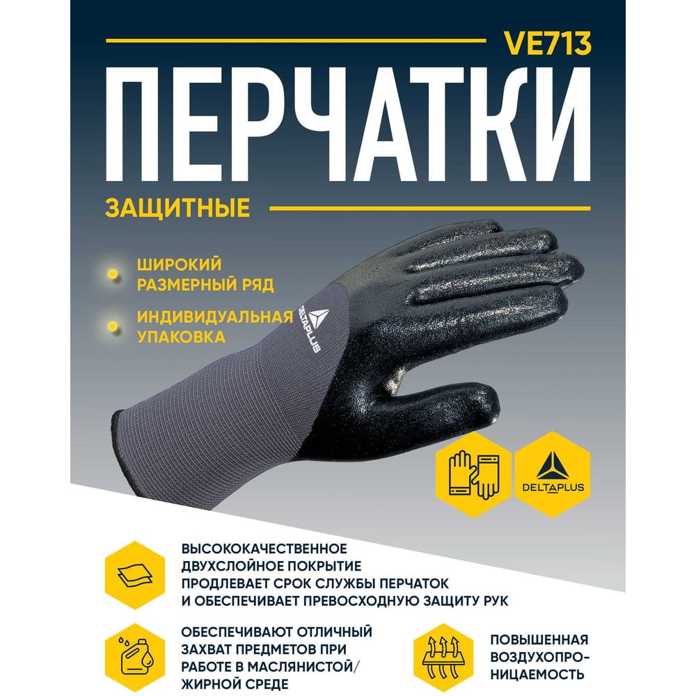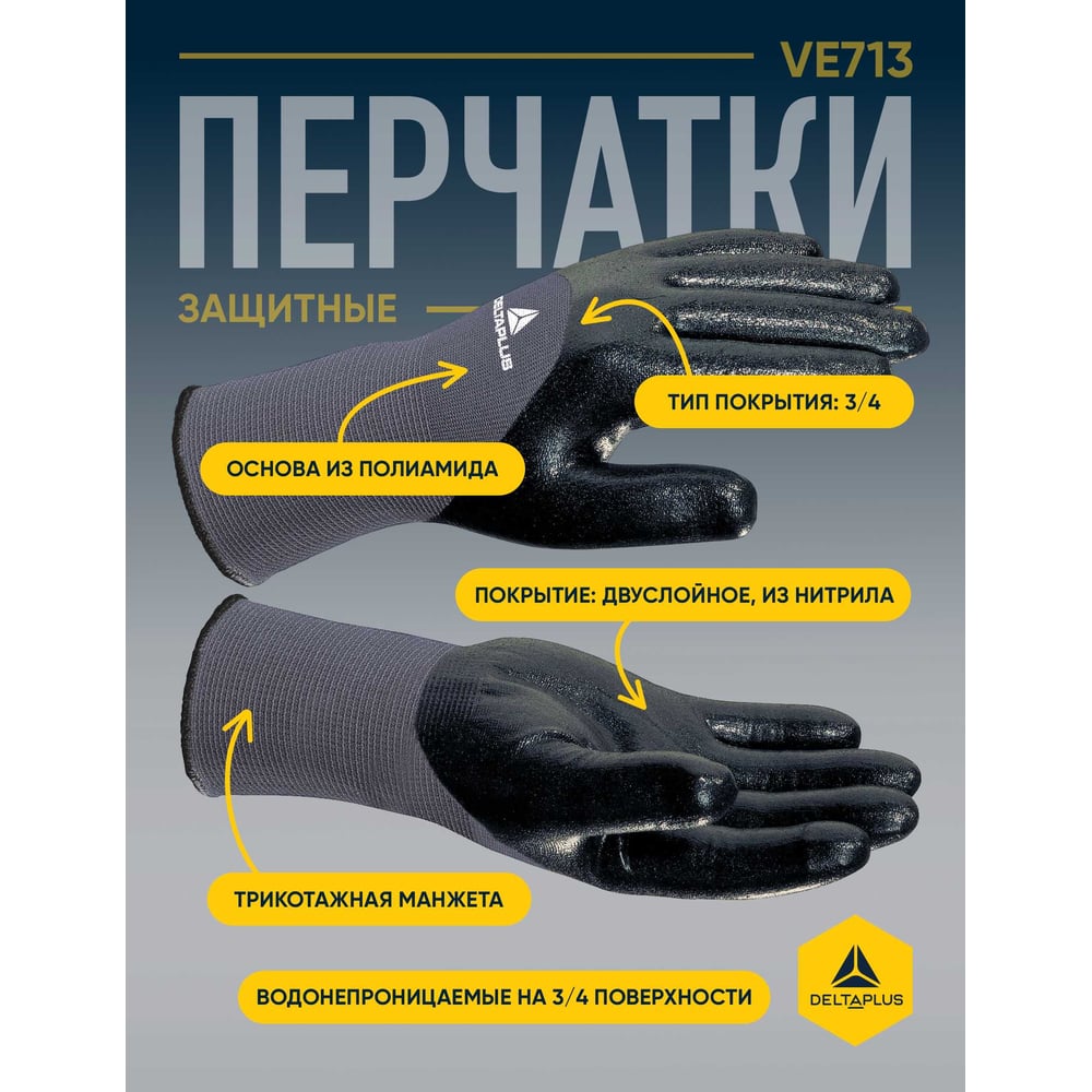 Полиамидные перчатки с двойным нитриловым покрытием Delta Plus VE713, р.10 VE71310