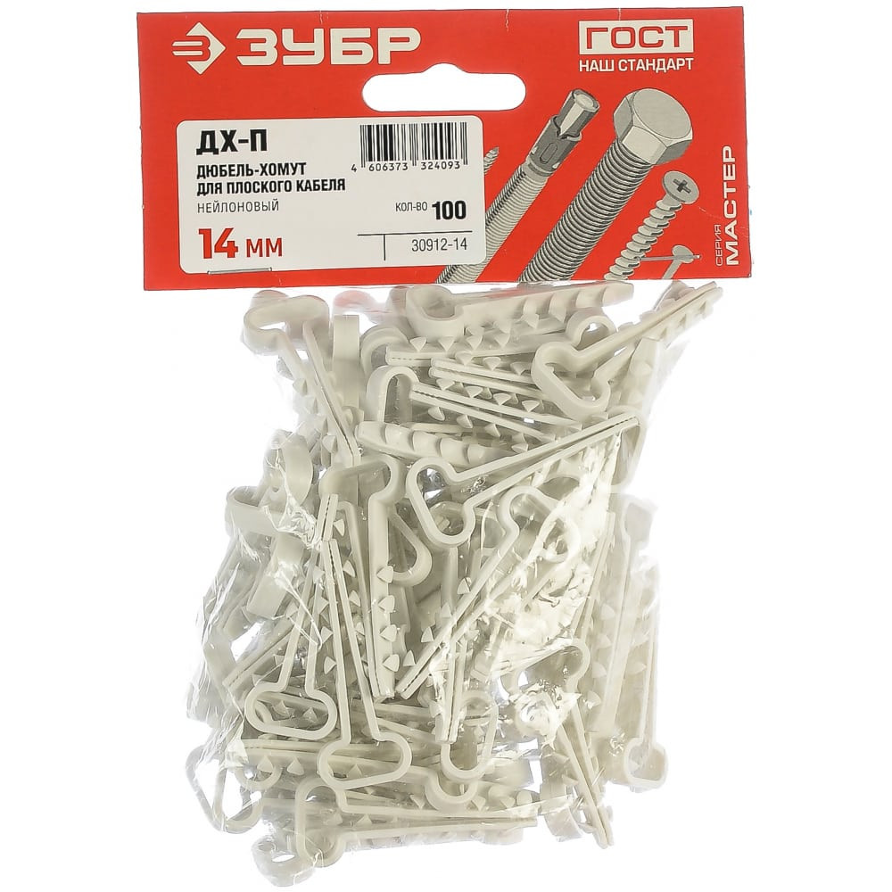 Зубр Дюбель-хомут для плоского кабеля ДХ-П, 14 мм, 100 шт, нейлоновый, 30912-14
