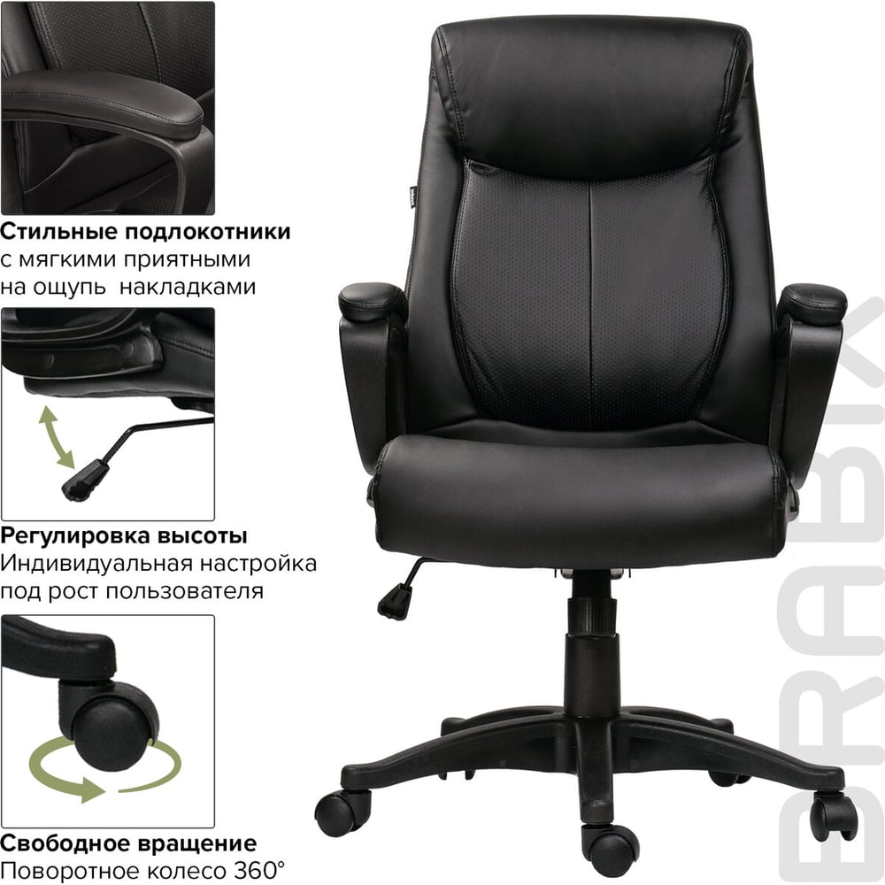 Компьютерное офисное кресло руководителя BRABIX Enter EX-511, с подлокотниками, эко кожа 530859