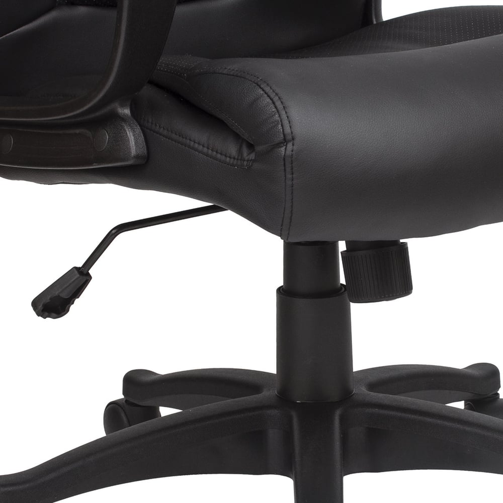 Габариты без упаковки 1120x650 мм Вес нетто 14.8 кг Стиль классический Серия Enter Регулировка высоты сиденья да Требует сборки да Подлокотники да Подъемный механизм да Механизм качания да Регулировка высоты спинки нет Регулировка высоты подлокотников нет Механизм вращения да Подголовник да Регулировка наклона спинки нет Подставка для ног нет Max нагрузка 120 кг Ширина сиденья 510 мм Глубина сиденья 510 мм Ширина спинки 500 мм Высота спинки 620 мм Min высота сиденья 445 мм Мах высота сиденья 540 мм Поясничный упор есть Цвет спинки черный Материал крестовины пластик Материал подлокотников Пластик/экокожа Цвет сиденья черный Материал обивки экокожа/кожзам Колеса есть