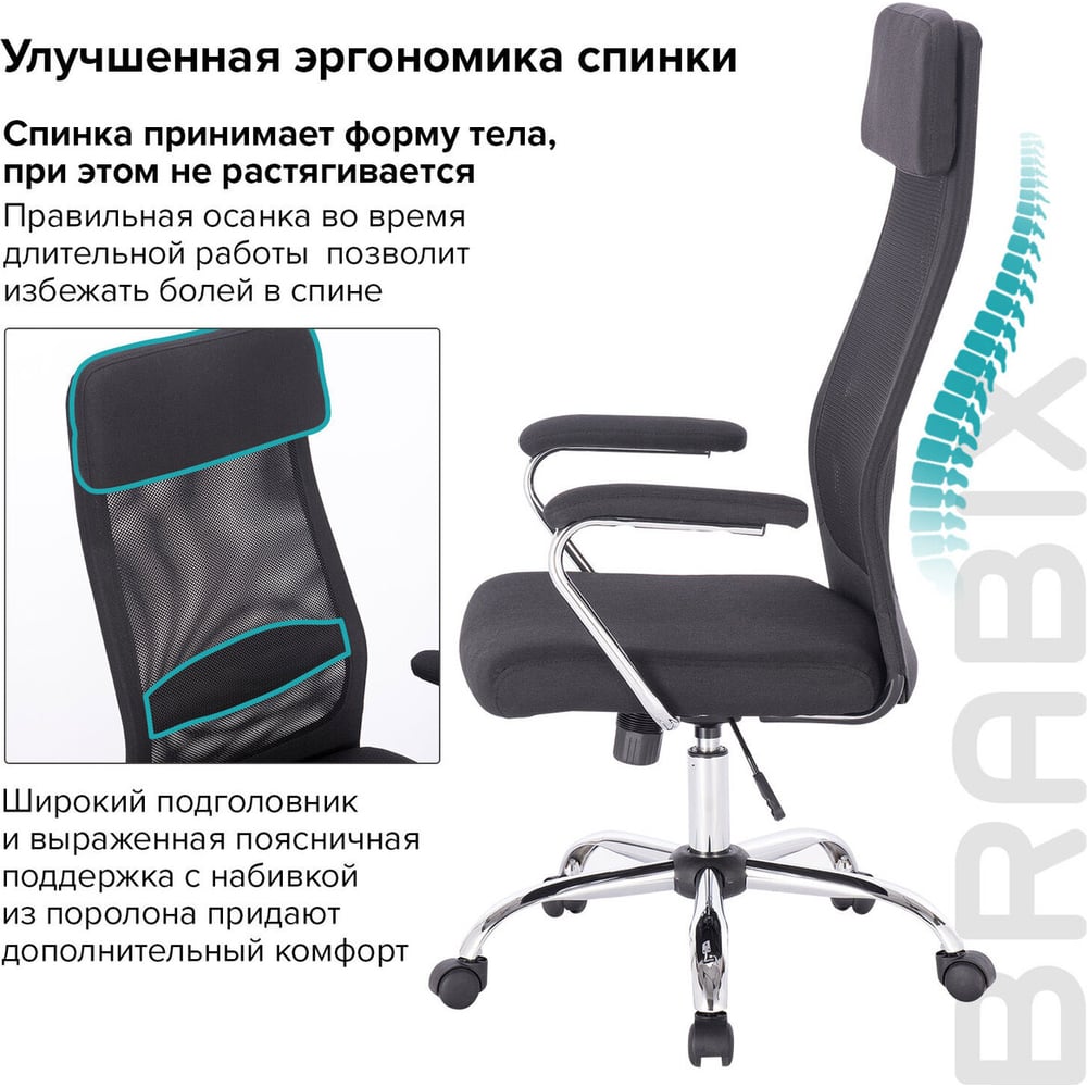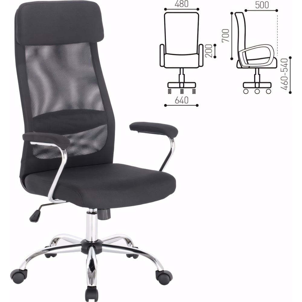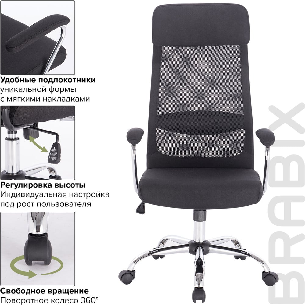 Компьютерное офисное кресло руководителя BRABIX Flight EX-540, с подлокотниками, хром, сетка 531847