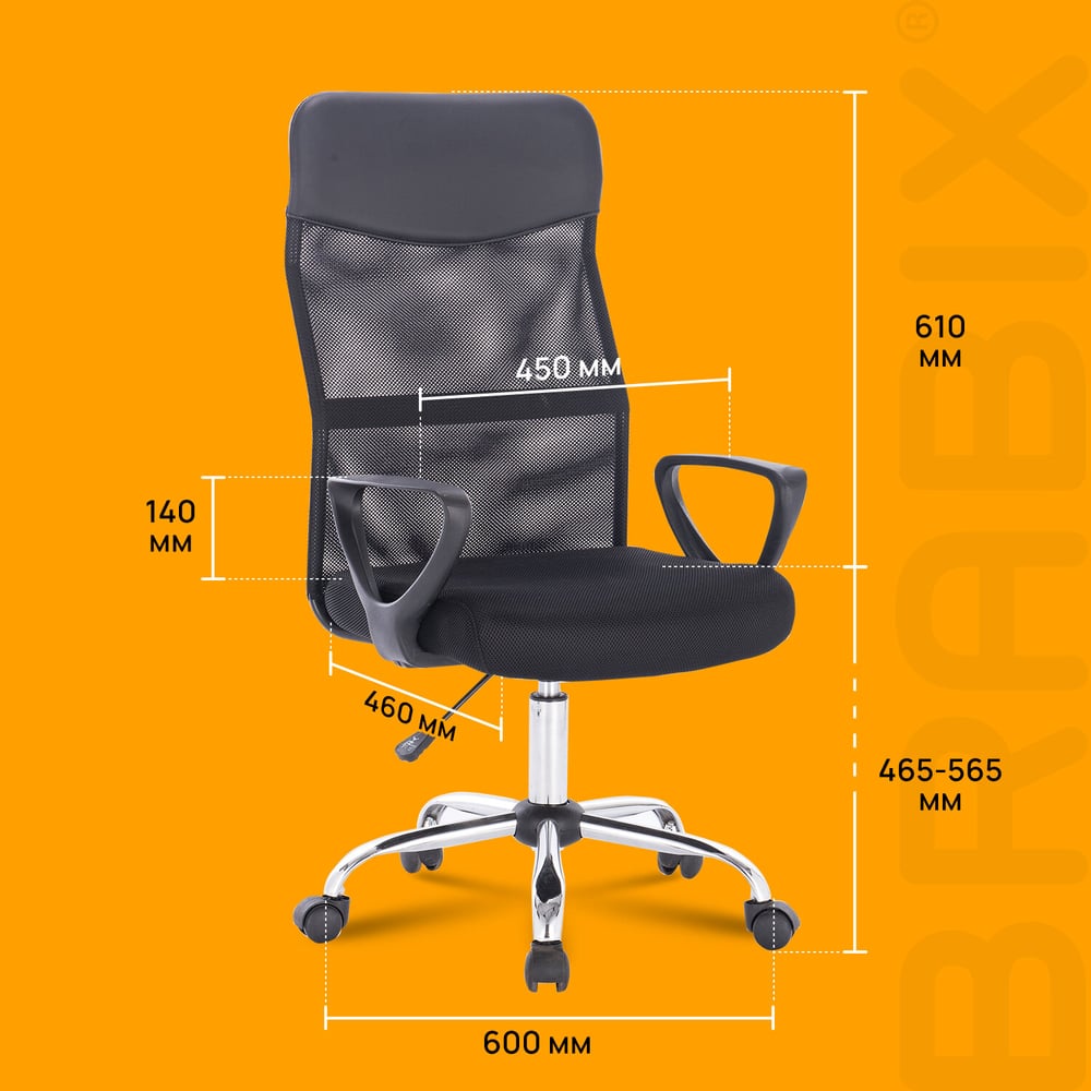 Компьютерное офисное кресло BRABIX Tender MG-330, с подлокотниками, хром, сетка 531845