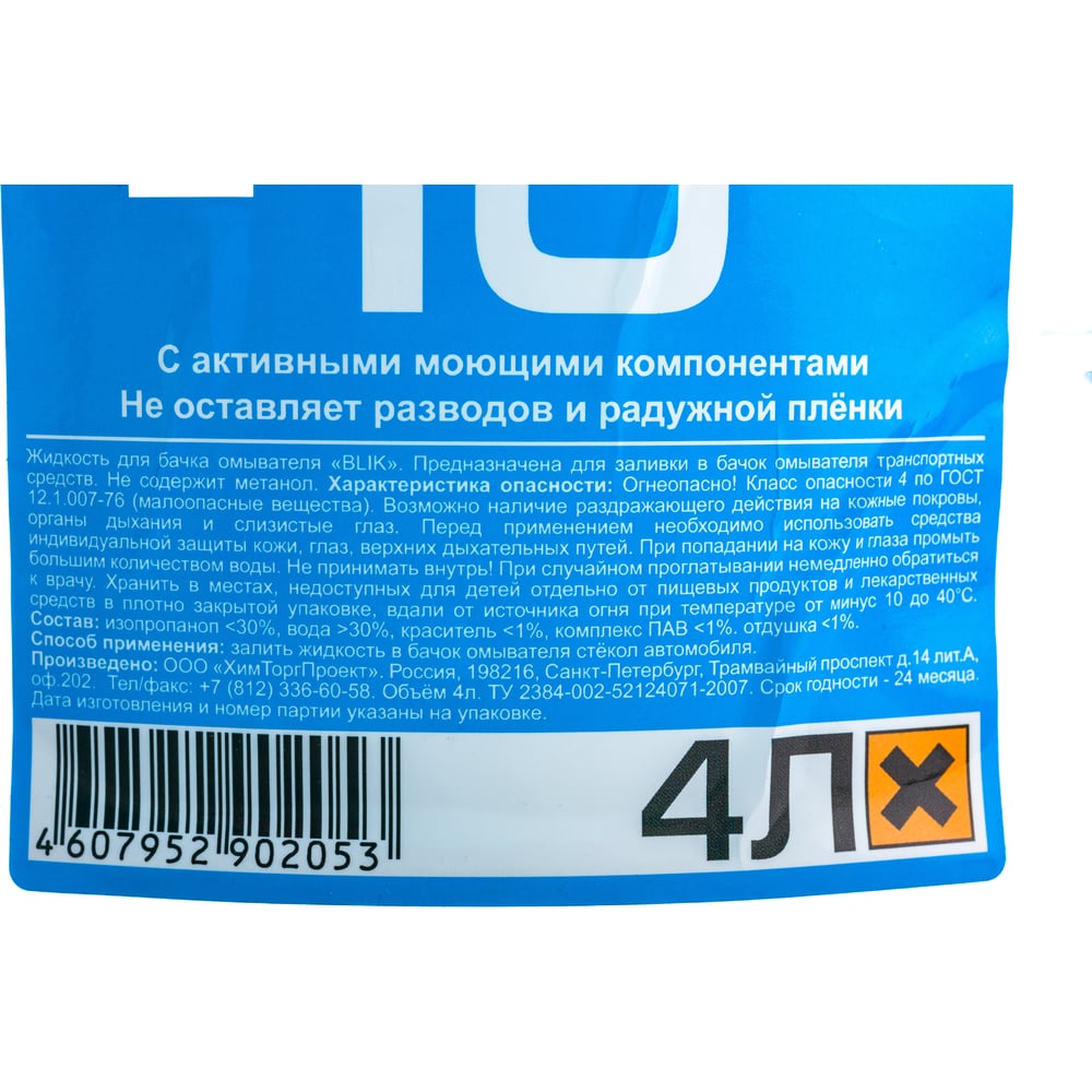 Жидкость в бачок омывателя Старт BLIK -10, 4л/пэт 4607952902053