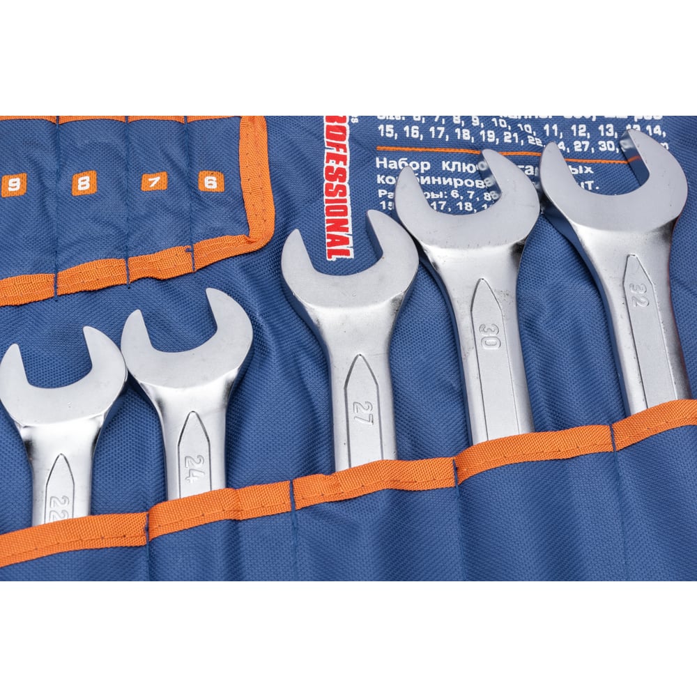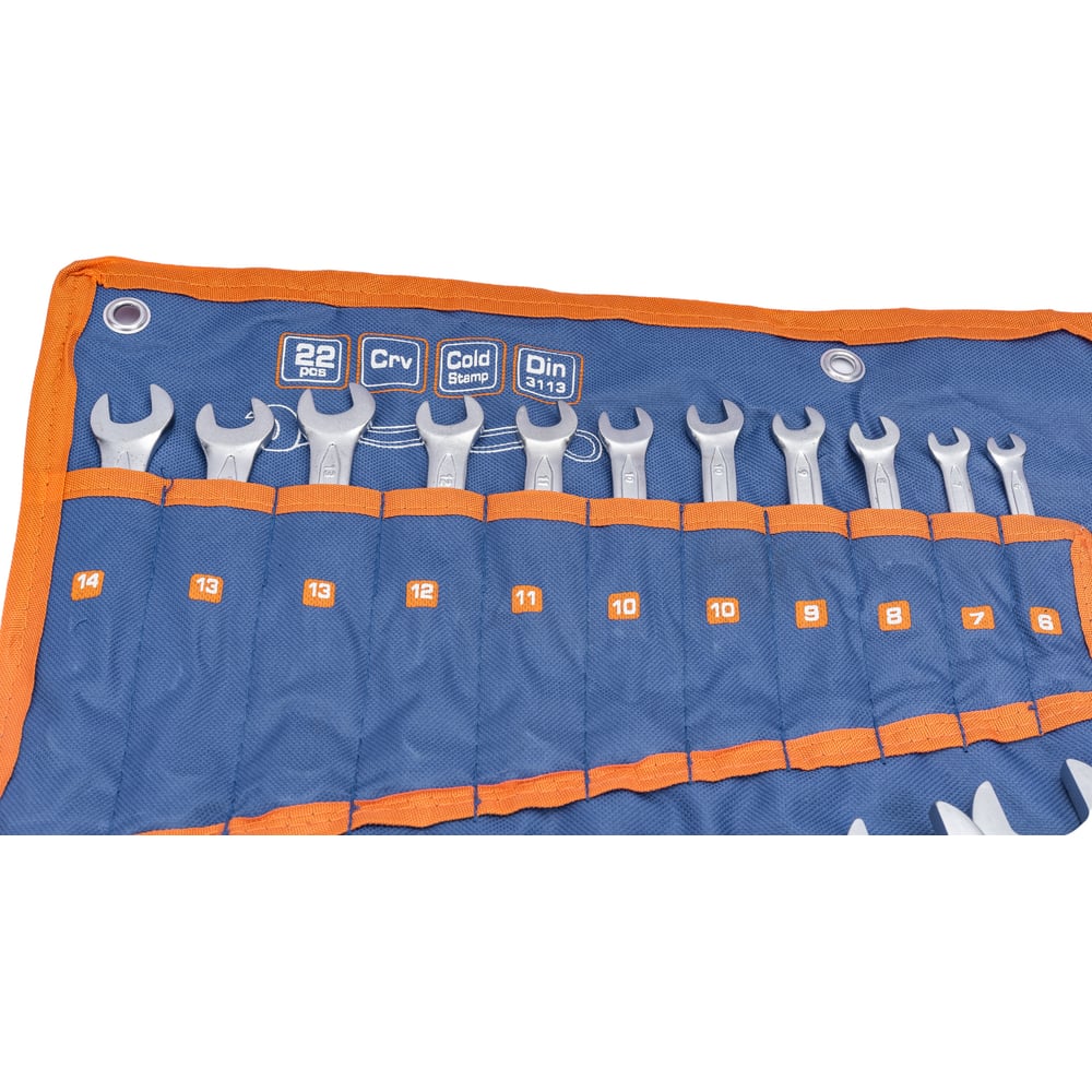 Набор комбинированных ключей 22шт: 6-19 21 22 24 27 30 32мм сумка KRAFT KT 700592