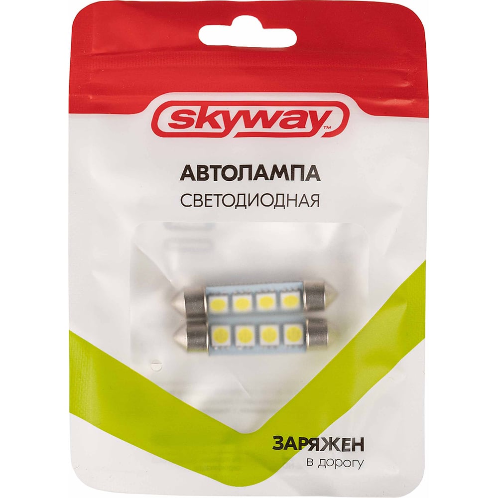 Автолампа SKYWAY диод T11 (C5W) 12V 4 SMD диода 1-конт 41мм белая, 2 шт. S08201172