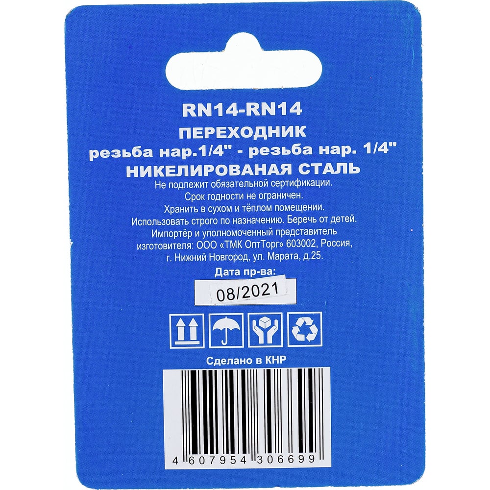 Переходник RN14-RN14 наружная резьба 1/4" - 1/4" CONCORDE 6619328