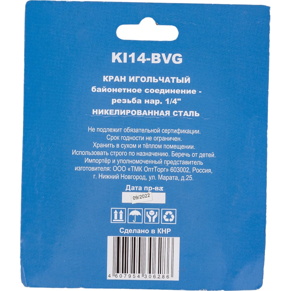 Кран игольчатый KI14-BVG байонет с гайкой - наружная резьба 1/4" CONCORDE 6619296